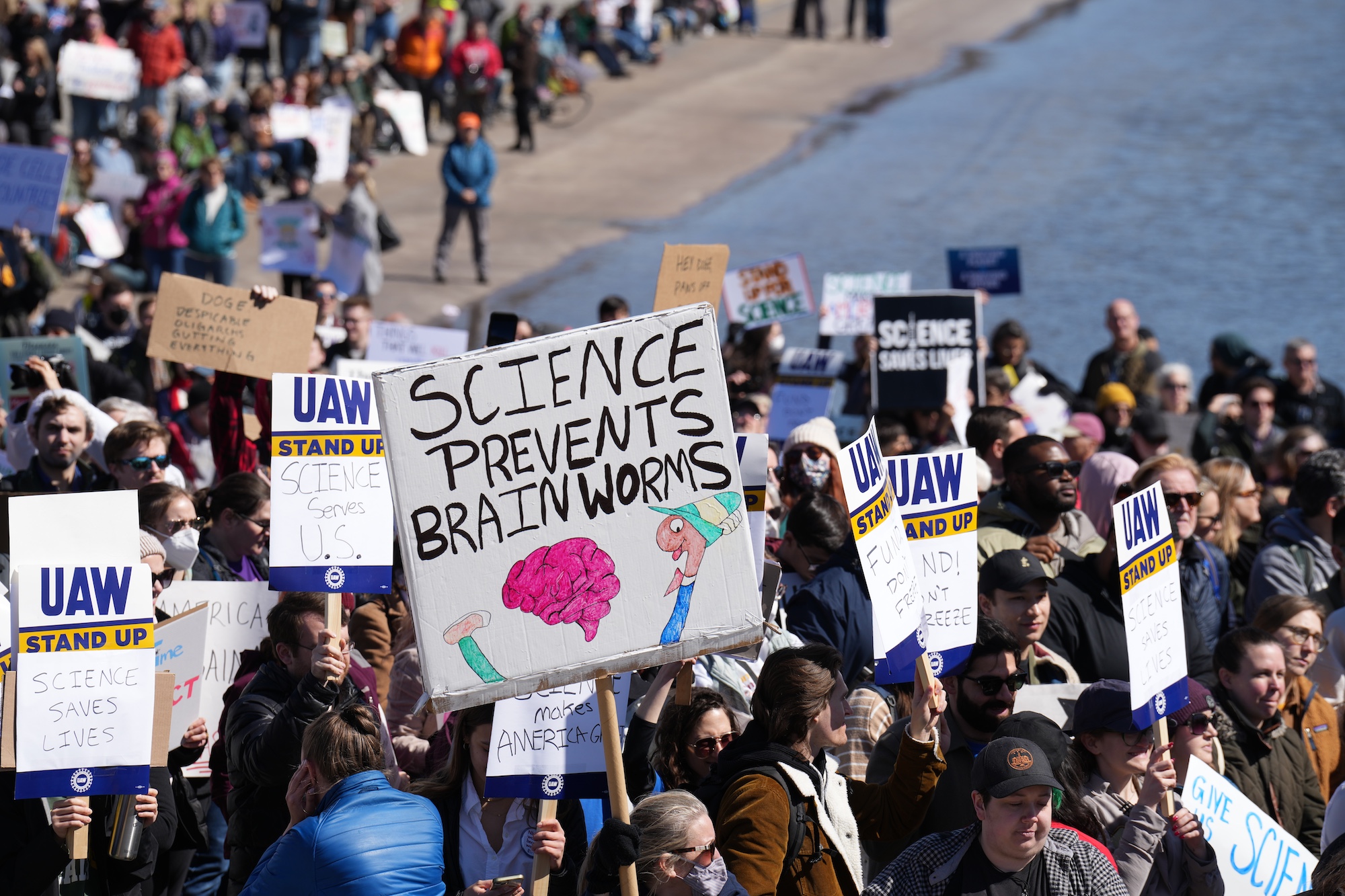 The protest and rally were originally conceived by a small group of graduate students and other mid-career scientists in reaction to the Trump administration’s DOGE firing of thousands of government science workers, along with cutting funds, freezing grants and terminating DEIA (diversity, equity, inclusion, and accessibility).