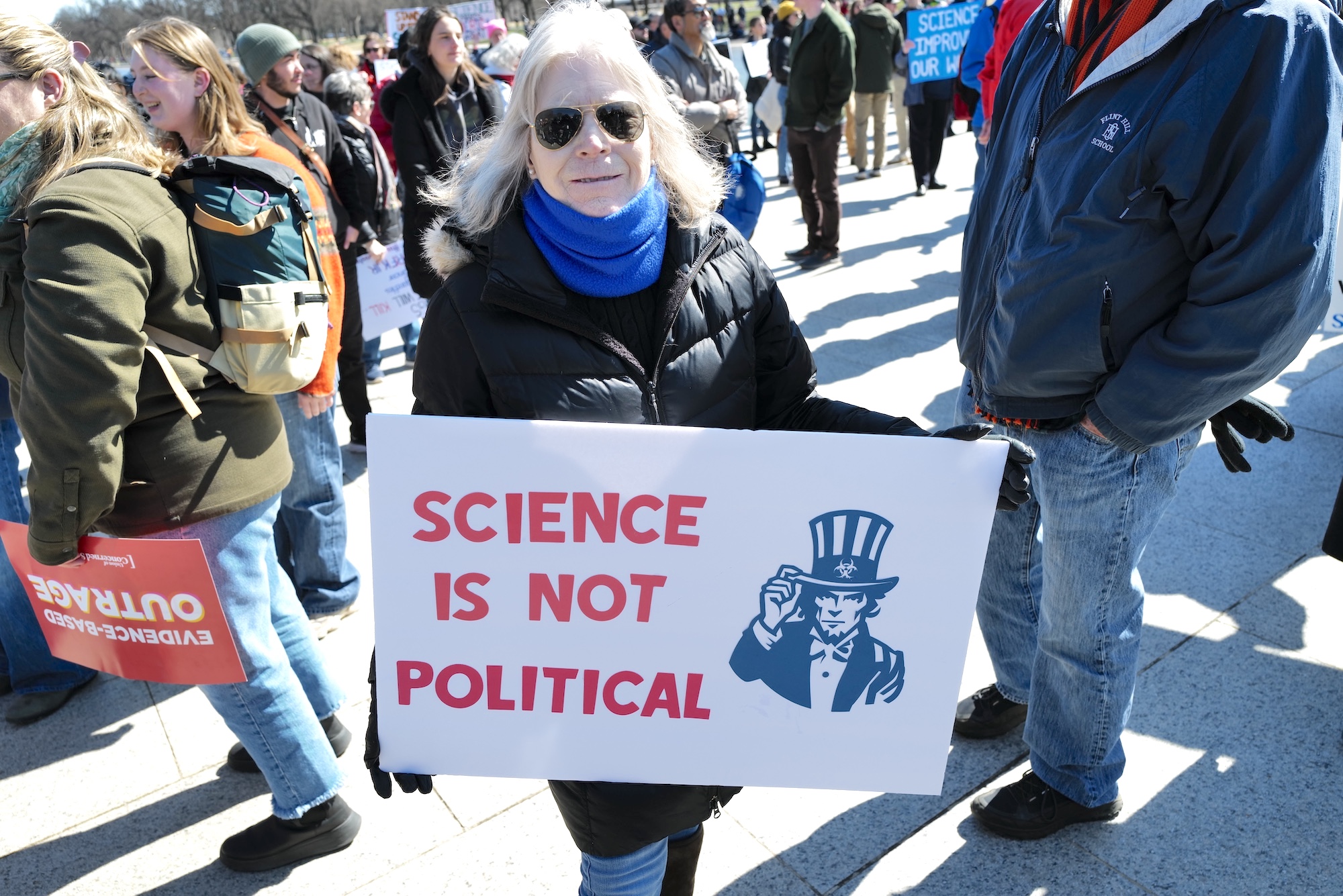 For anyone unable to attend a rally, organizers encouraged them to participate in a noon walk-out by leaving their labs, jobs, or classrooms in a display of solidarity advocating for science.