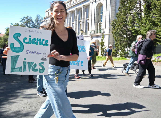 (Berkeley, March 7) - As students and professors, including a Nobel laureate, addressed the crowd, I tried to understand: "Why would any government, of any ideological bent, want to destroy the nation's scientific research establishment when it claims to want to make the country "great".As I questioned demonstrators at Friday's rally and protest, the answers were varied. They mostly attributed the lunacy of Trump actions to the kind of individual that he is.