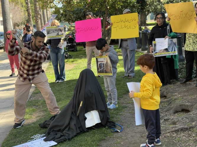 Ali Benawa and a contingent of Afghan American women, men and children came to the protest to highlight the oppression of women under the Taliban.