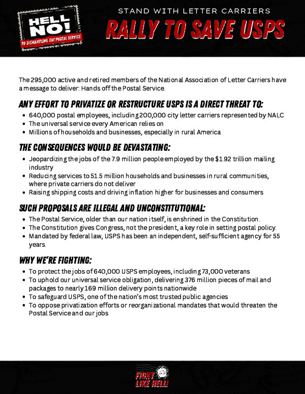 NALC protests on March 23rd: https://www.nalc.org/news/fight-like-hell