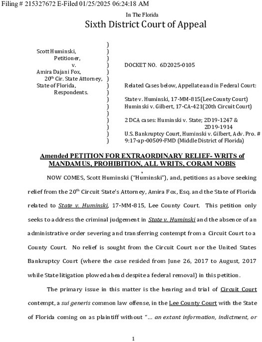 The evidence is public. The 2,407-page case record (https://edca.2dca.org/DcaDocs/2019/1914/2019-1914_Brief_530010_RC09.pdf) expose a travesty of a depraved abuse of government power. See links to court documents in the video description at https://www.youtube.com/watch?v=zTfxPnIepXM that concisely exposes the government fraud involved in the initiation and prosecution of State v. Huminski. This isn’t speculation—it’s documented reality.