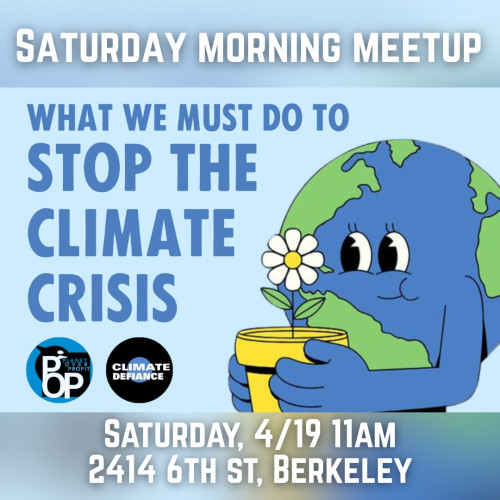 Join us for an Earth Day discussion that moves beyond corporate greenwashing and into real climate action. We'll introduce Climate Defiance and Planet Over Profit, two organizations that just launched here in the Bay Area fighting for climate justice through direct action and systemic change. Learn about the true roots of the climate crisis, racial capitalism, corporate greed, government inaction, and how mainstream Earth Day messaging obscures these realities. We’ll explore why petitions and recycling won’t save us and why bold direct actions are needed now more than ever. This talk will challenge dominant narratives, highlight the connections between climate and other justice movements, and offer tangible ways to take action.