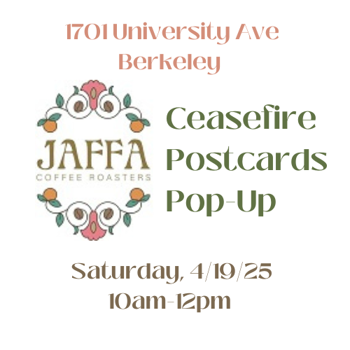 We will also write to the Alameda County Board of Supervisors and the Alameda County Treasurer-Tax Collector to urge them to pass an ethical investment policy; to the Egyptian Embassy to demand they open the border crossing for humanitarian aid; and we will continue to demand that Senators Padilla and Schiff comply with US law and cease their support of Israel’s genocide and ethnic cleansing against the Palestinian people.