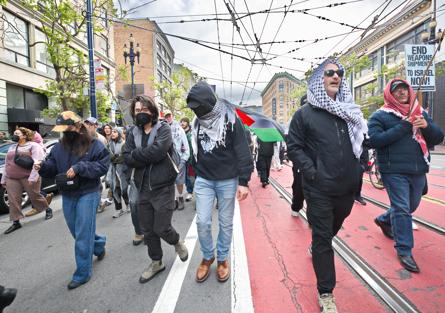 After the rally with some powerful speakers, they marched up Market Street, stopping for another rally at Powell street.