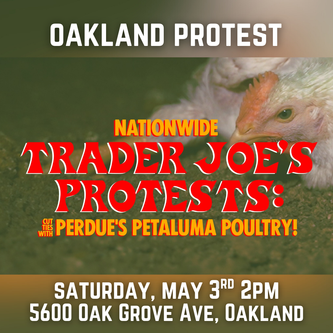 Join the campaign as we once again ask Trader Joe’s to do the right thing and drop Perdue's Petaluma Poultry as a supplier. Protests are taking place at stores across the country during this nationwide weekend of action. This action represents Oakland - please attend!