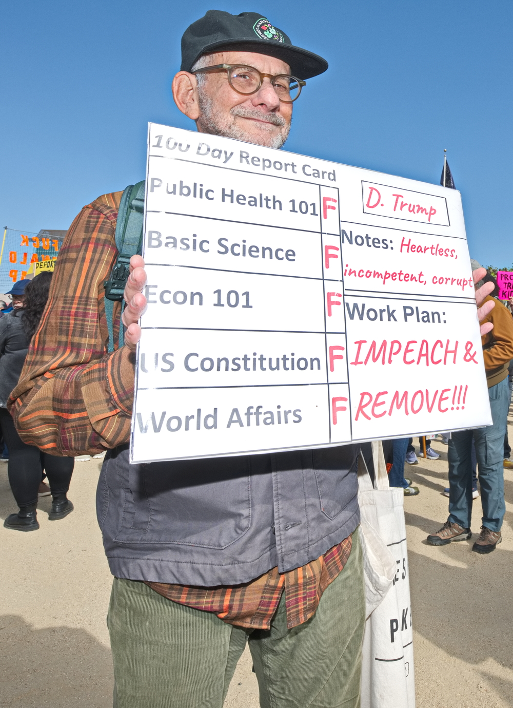 (San Francisco, May 1, 2025) - People gathered in front of City Hall for the rally celebrating May Day, the worker's holiday created to "honor the martyrs" that is celebrated throughout the world. It originated in Chicago in 1886 when four labor activists were hung for a crime they did not commit.If there was one sign that summed up the tone of this year's May Day event, it was the one that shouted "MayDay! Mayday! Mayday! our democracy is under attack!" There were many signs on the theme of a democracy in danger and making comparisons to Germany's descent into Nazism.