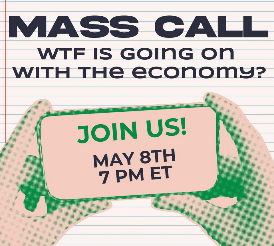 Inflation, tariffs, trade wars, an impending recession — there's a LOT happening with the economy right now. That's why we're excited to invite you to our next mass organizing call on Thursday, May 8 at 4 PM PT (7 PM ET).