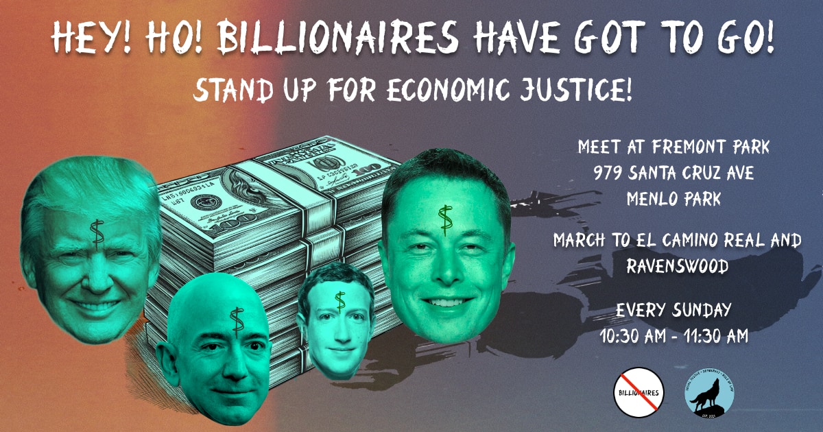Join us to march in protest of the corruption and greed of Trump, Musk, Bezos, Zuckerberg and the rest of the billionaire class. From a White House run by the highest bidder, to unfettered access to the vast machinery of the federal government, to privatizing everything that isn’t nailed down (and even then), to extracting every last resource in a relentless pursuit of ever increasing wealth, to trying their best to divide us so we don’t realize who the real problem is, billionaires being billionaires are destroying our democratic institutions, decimating federal agencies, making us less safe, and sucking our resources dry.