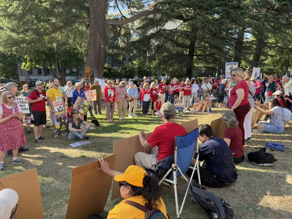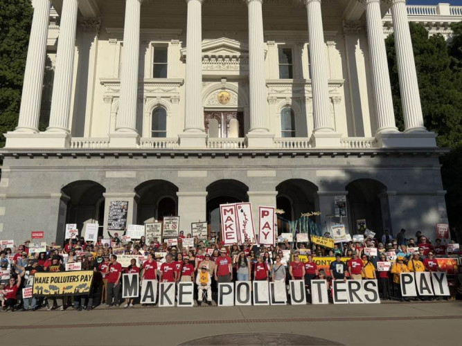 On a warm and balmy Sacramento evening, a coalition of climate justice advocates, health care professionals and representatives of frontline communities rallied at the State Capitol in Sacramento on May 27 to show their support for the Make Polluters Pay Climate Superfund Act.
