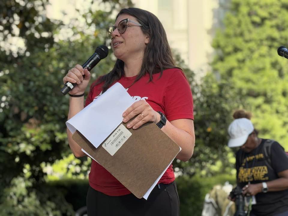 Other speakers at the rally include Matthew Schodorf, who talked about the extreme weather caused by fossil fuel-fueled climate change; Taylor Nichols, who discussed the health impacts of the fossil fuel industry on vulnerable communities; and Linda Rudolph, who also spoke about the impact of oil drilling and climate disruption on public health.