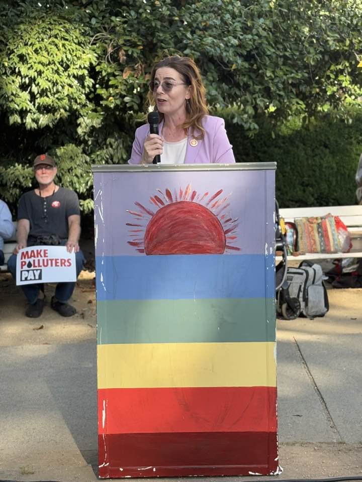 “The climate crisis is a financial crisis,” said Assemblymember Dawn Addis, who opened up the rally. "As Californians face the devastating impacts of climate change from wildfires and extreme heat, and our State experiences historic budget challenges, we cannot lay the burden on everyday taxpayers."