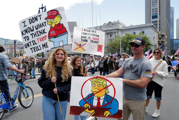 SAN FRANCISCO (06-14) – Thousands of activists in every state across the country rallied in more than 1,900 towns and cities today to peacefully protest Donald Trump in actions calling for a “No Kings! Nation Wide Day of Defiance” by saying “In America, We Don’t Do Kings!” The protests were organized by the American Civil Liberties Union, Indivisibles, 50501, Public Citizen, American Federation of Teachers, and Third Act among many others.