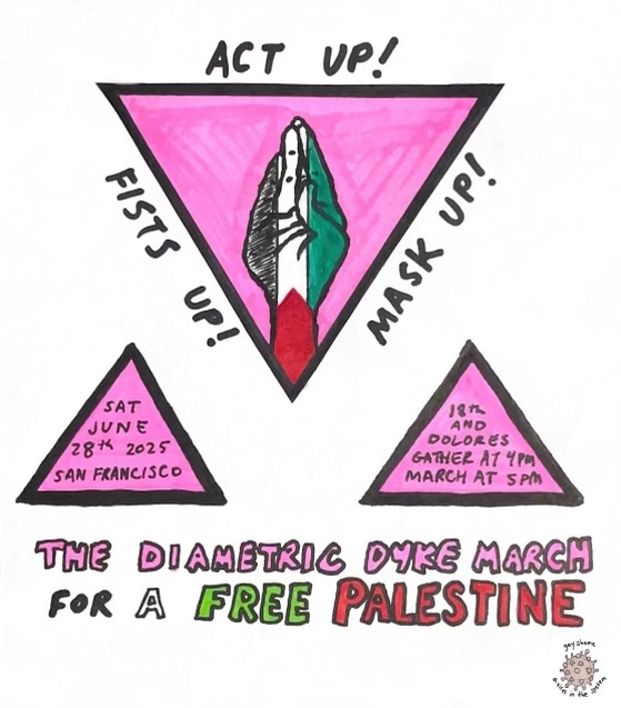 Rise up from the lesbian death bed of pink washing, and into the streets with us to march for the liberatory potential of queer resistance and a free Palestine 🇵🇸