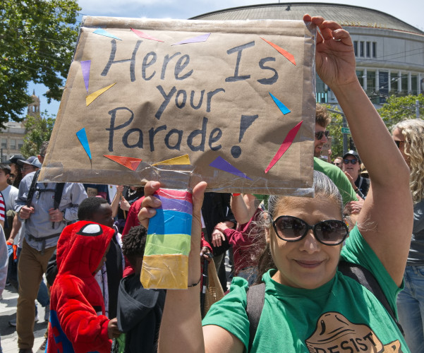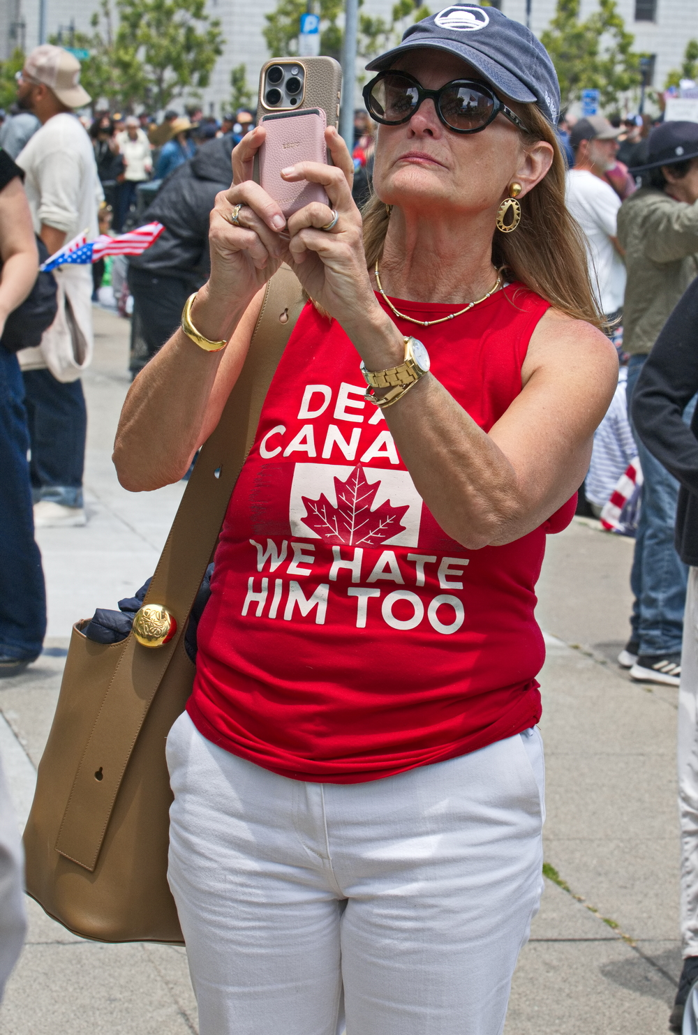 The San Francisco No Kings march was enormous, perhaps three hundred thousand people. Starting on 19th and Dolores they marched to the Civic Center. One sign said "here is your parade." While many signs characterized Trump as a murderous Nazi racist, others mocked him. One, in the form of an Amazon for sale item for a pump, asked "why treat a manhood problem with a $45 million parade." Answering Trump's accusation that protesters were being paid, one held a sign assuring the world that he was there hating Trump for free.