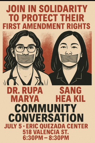 A panel about how Dr. Rupa Marya and Professor Sang Hea Kil were fired for speaking about the genocide happening in Gaza. This is a violation of their First Amendment rights.