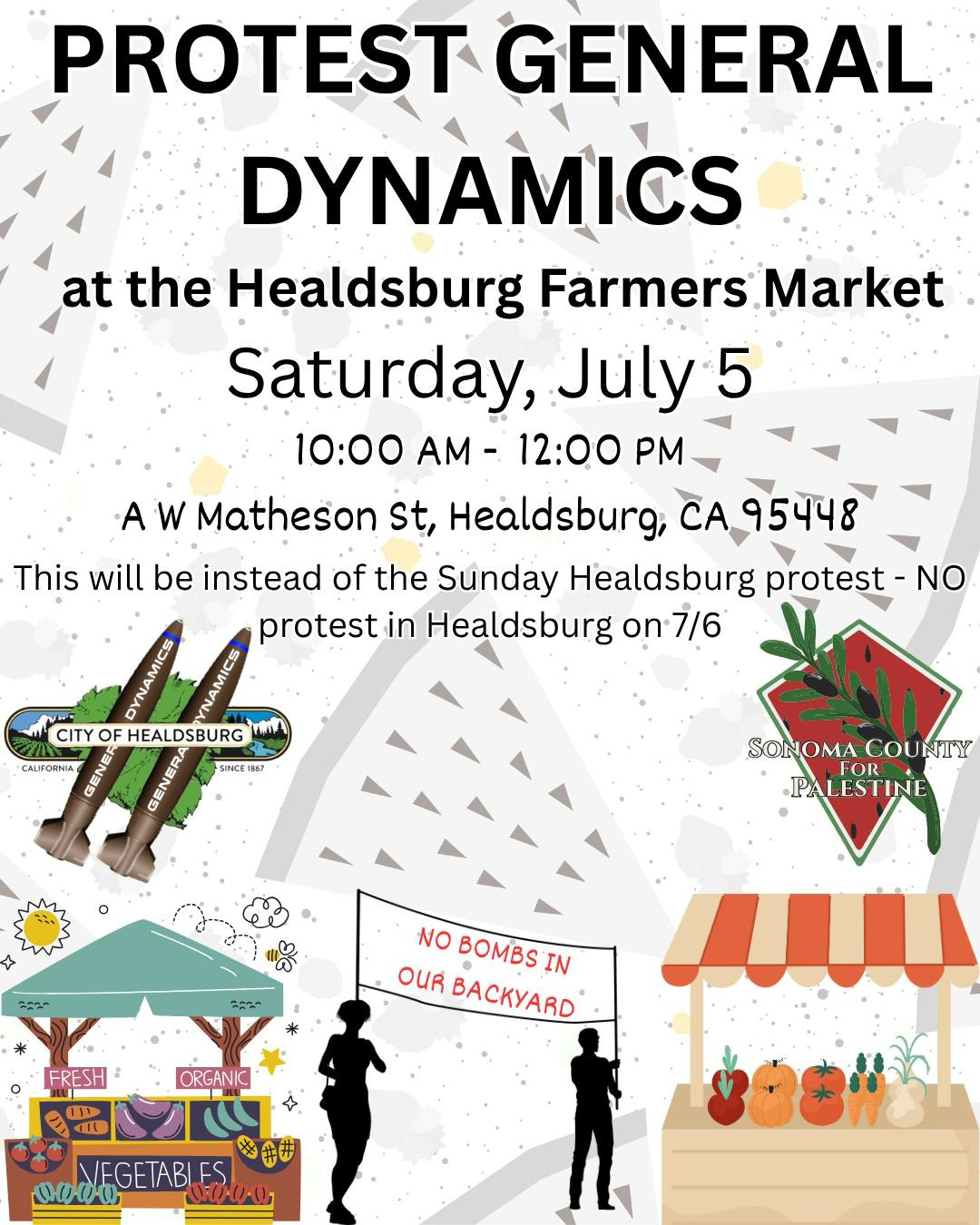 Join CODEPINK and Sonoma County for Palestine at the Healdsburg Farmers' Market to tell General Dynamics to get out of Sonoma County!