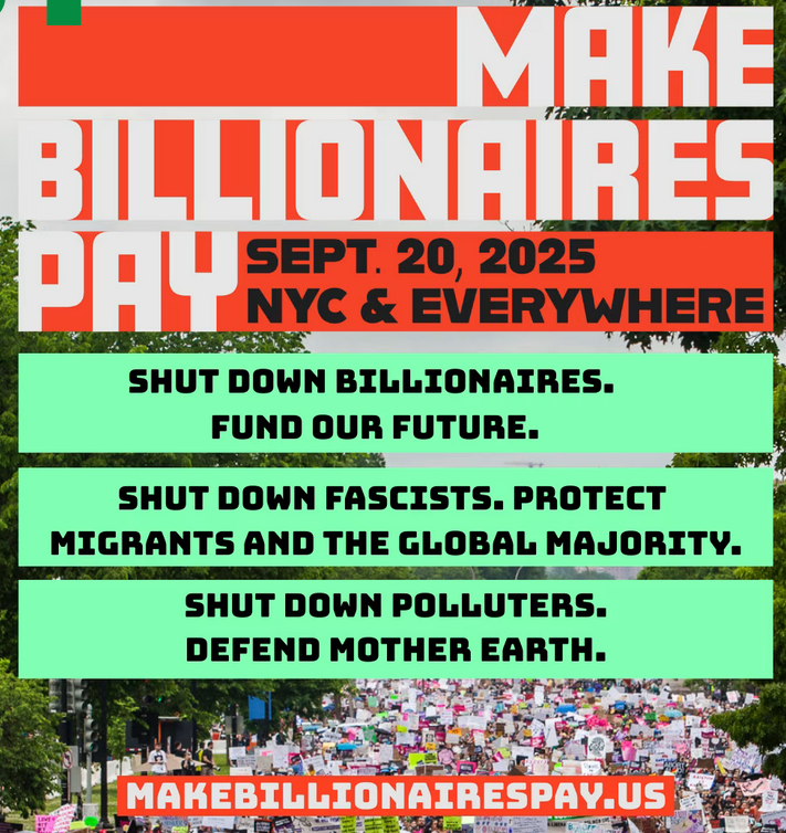 September 20, link together multiple crises—ranging from authoritarianism to the climate emergency to US President Donald Trump's mass deportations—by pointing the finger at the ultra-wealthy oligarchs who have been supporting them all."