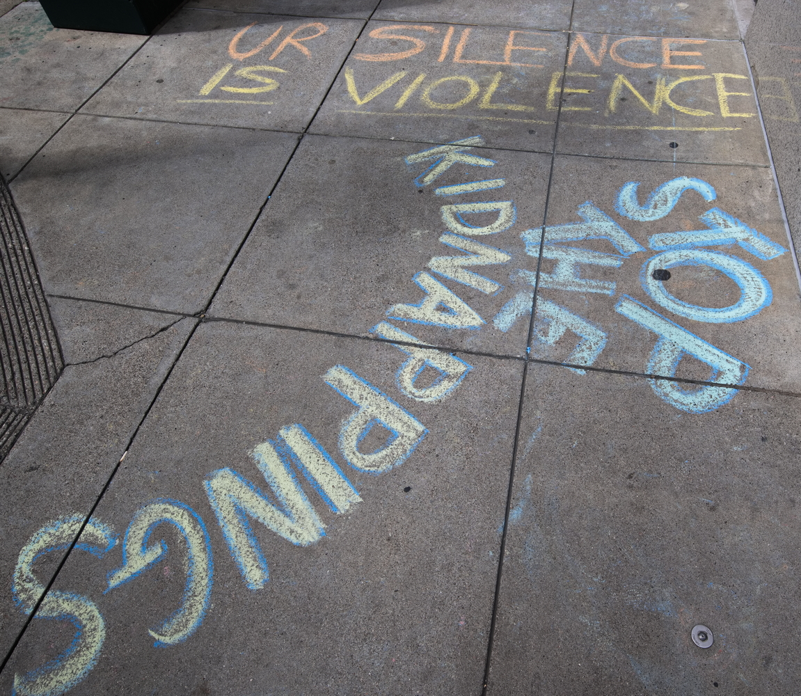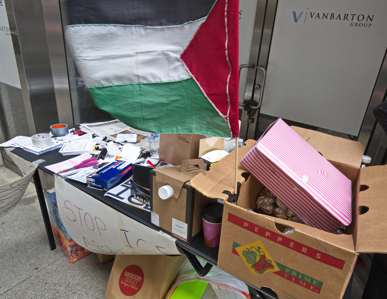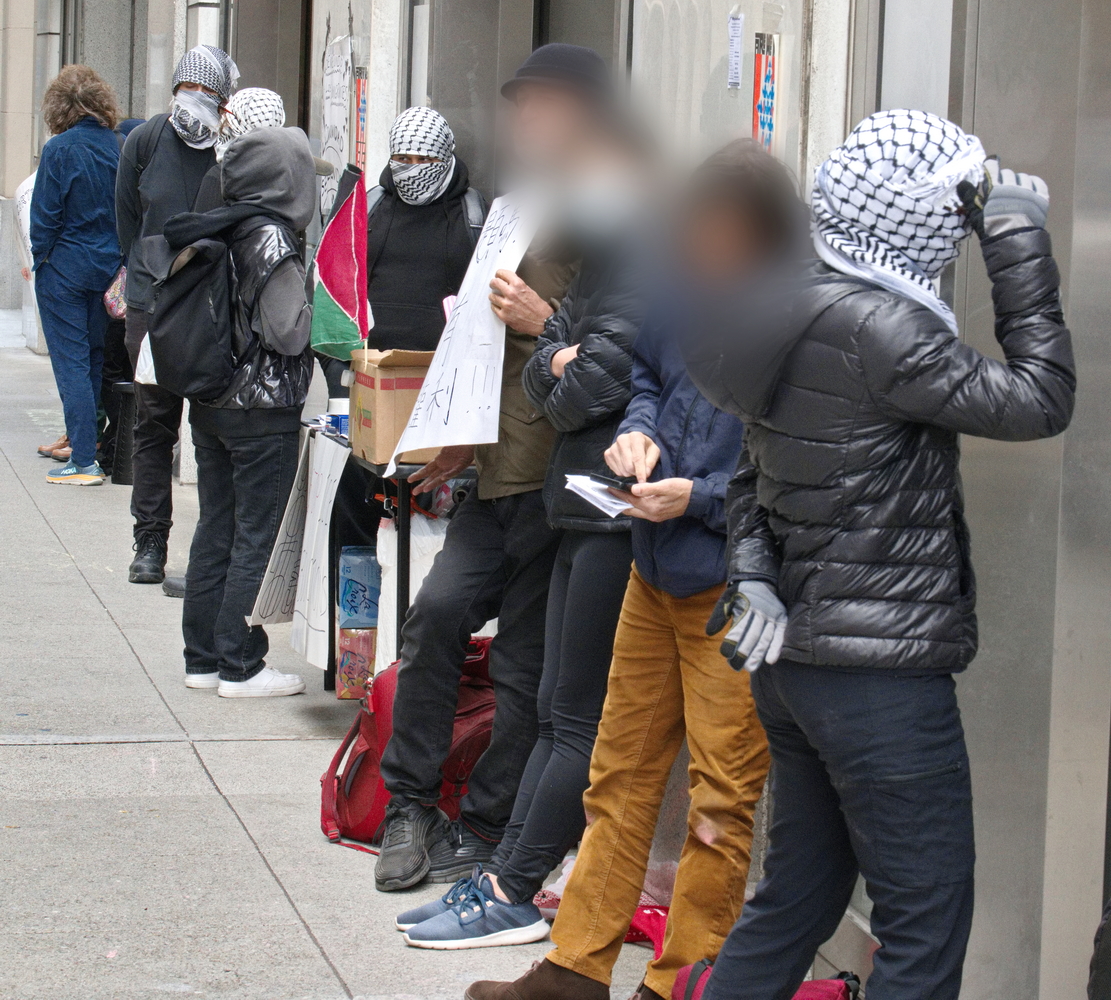 The photos below are of a small group standing guard at the court house building at 100 Montgomery Street. Photos have avoided clearly showing faces. See all high resolution photos here.