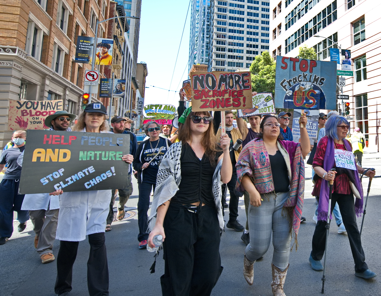 Then it was on to J.P. Morgan Chase where another rally was held. The Black Rock Headquarters building was next. As the group marched down Mission, their numbers significantly decreased. It turned out a group was discreetly infiltrating the Black Rock Building lobby.