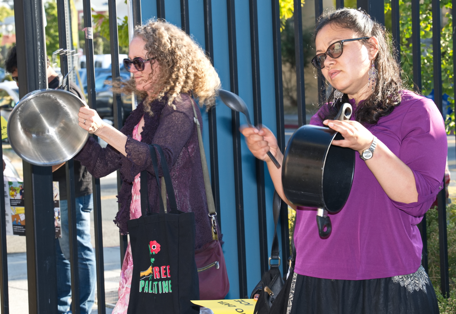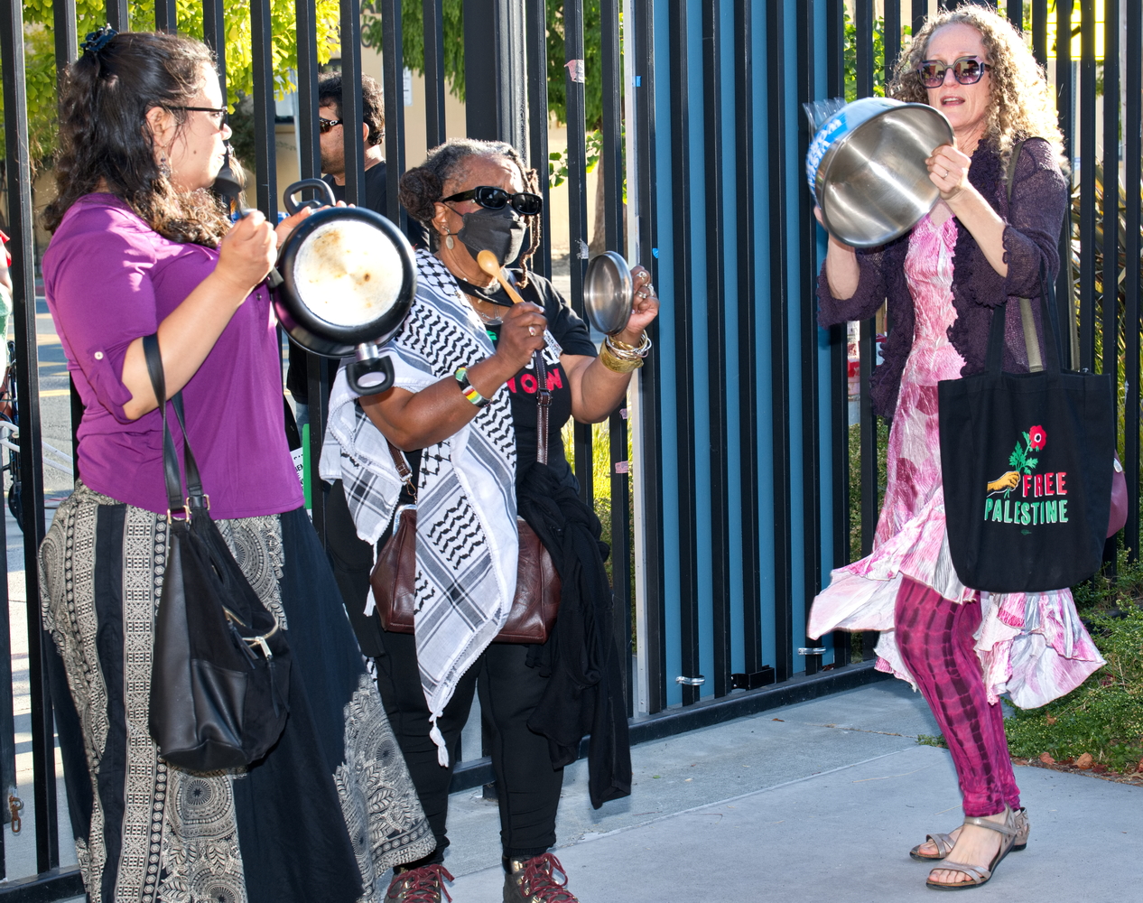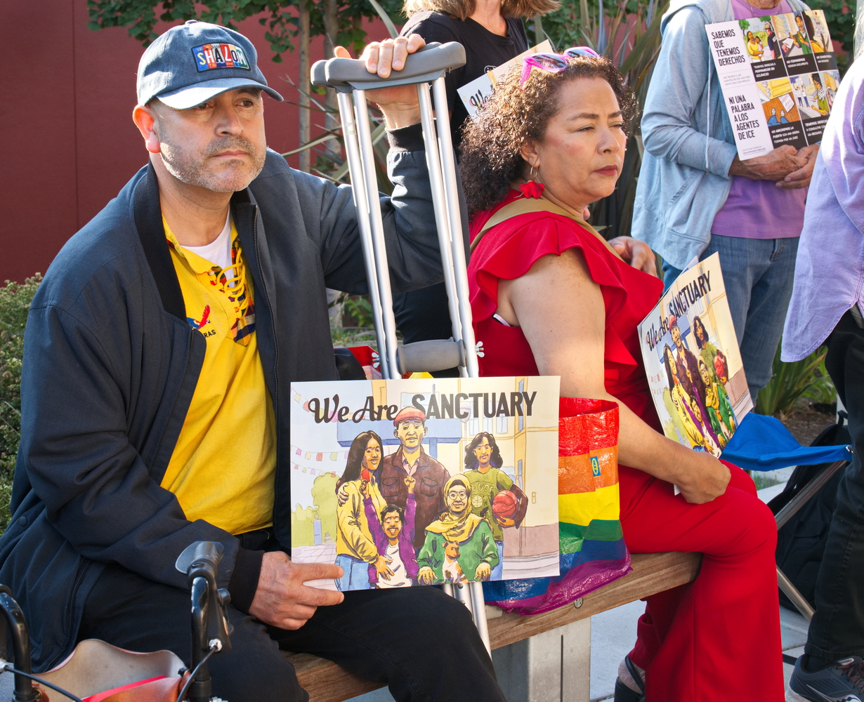 (Berkeley, Sept. 9) - The rally started an hour before the Berkeley City Council meeting at 1231 Addison St, with fiery speeches and a pretty decent delivery of "Which Side Are You On." Latinos were there to let the City Council know that they will not let themselves be abused.The banging of pots and pans in the outdoor courtyard keep up as the City Council met, proving a sufficiently audible reminder to the august legislators that the people and their demands were not far.
