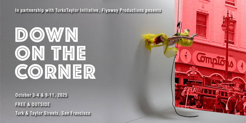 'Down on the Corner' is a work of aerial dance honoring the site of the 1966 Compton's Cafeteria Riot. Directed and choreographed by Jo Kreiter, it features a cast of queer, transgender, and female performers, original songs by Melanie DeMore and a film by Leila Weefur.