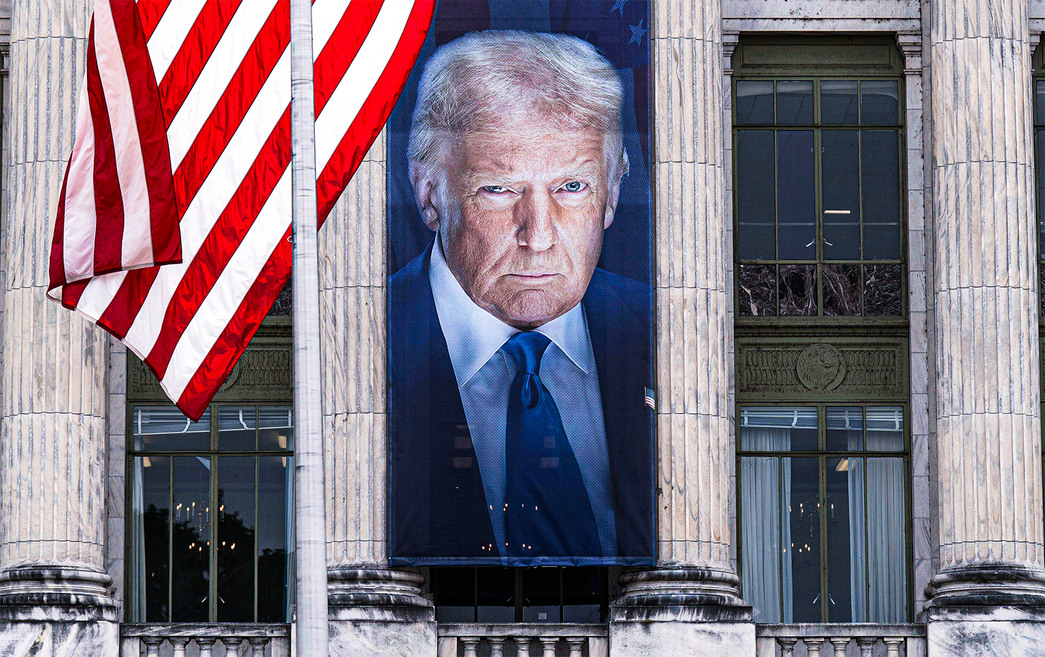 Washington D.C. propaganda image of the convicted felon President Trump shows his desire to be a dictator, and much worse.