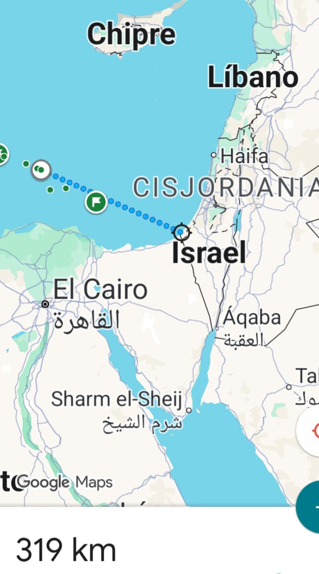 La Global Flotilla Sumud navega cerca a 304 km de Gaza y ha entrado a la zona de riesgo a 112 km donde fue interceptado el barco Madleen de la Flotilla Libertad en Junio pasado.