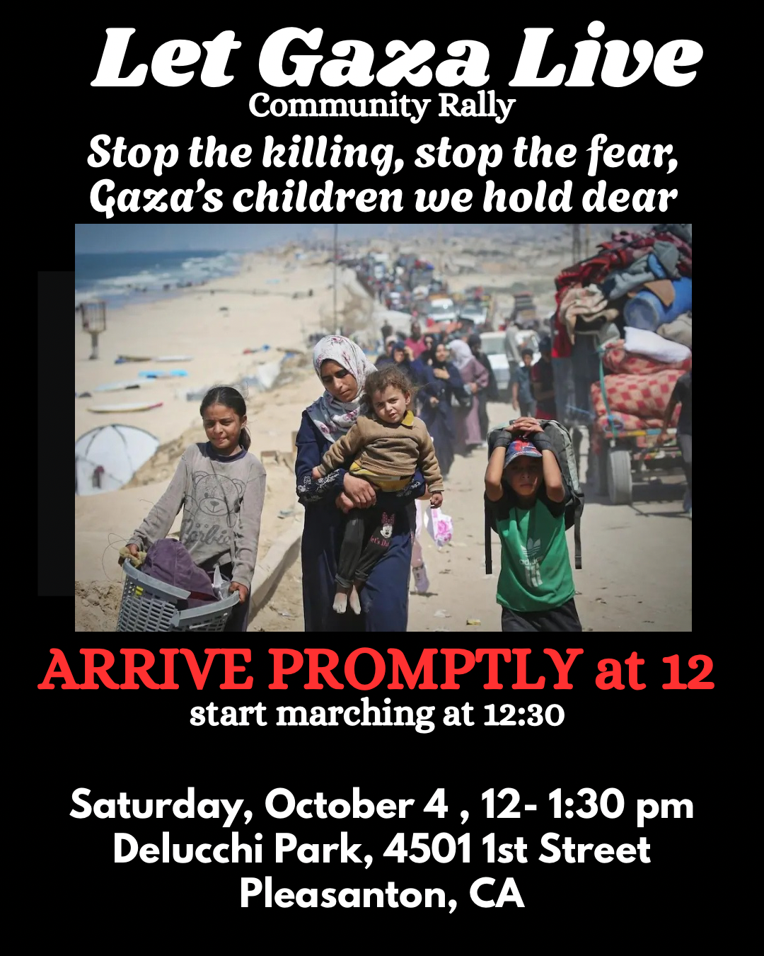 Bring your signs and we do a silent March through the Pleasanton Farmers Market.