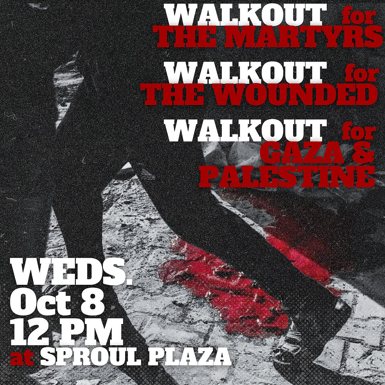 Walkout for Hind, walkout for Anas, walkout for Refaat. Stop the massacres, stop the famine, stop the genocide. Call upon Berkeley to DIVEST NOW