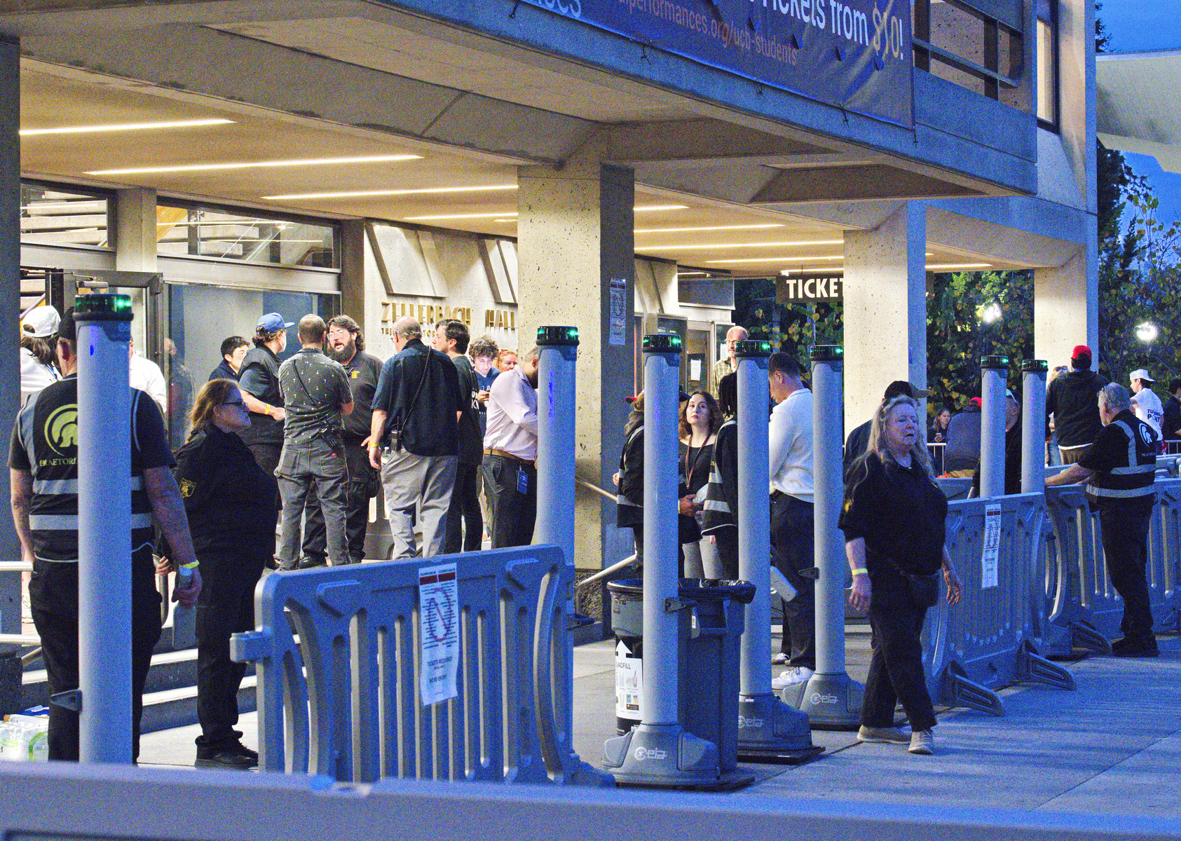 (Berkeley, Nov. 10) - The campus was as locked down as a military installation expecting attack. The student union building was locked with police standing guard behind the doors. All access to the Zellerbach Hall plaza became an armed checkpoint with the entrance to the auditorium requiring airport style security.Hundreds of commercial security, Berkeley police and Highway Patrol troops saturated the area and manned the high points. A helicopter hovered the whole time.