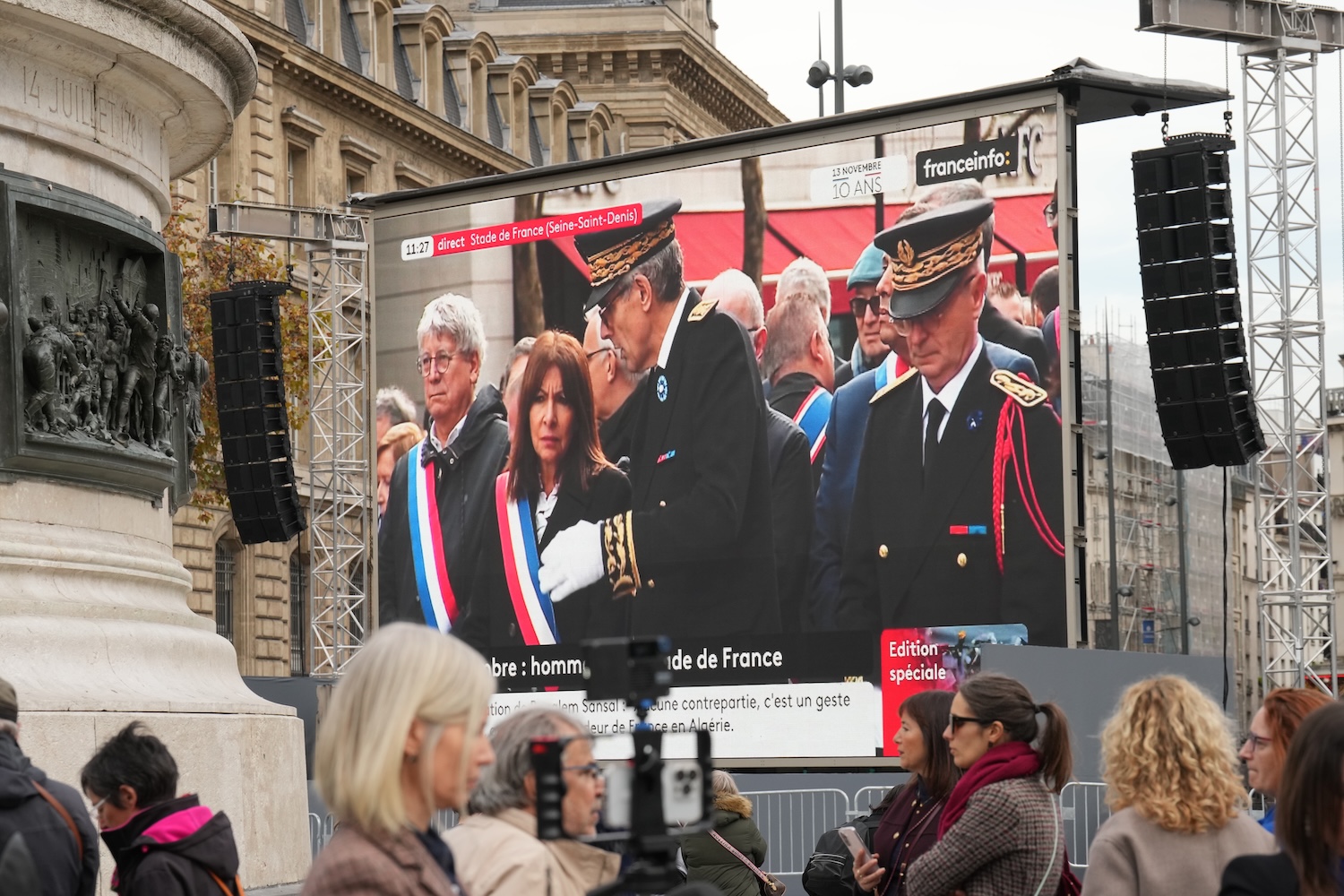Under heavy police presence in the afternoon, a ceremony at the Bataclan Theater, where 90 of the victims were murdered, took place including the reading of each victim’s name along with a moment of silence. A memorial plaque listing the victims’ names was unveiled at the building as part of the memorial.