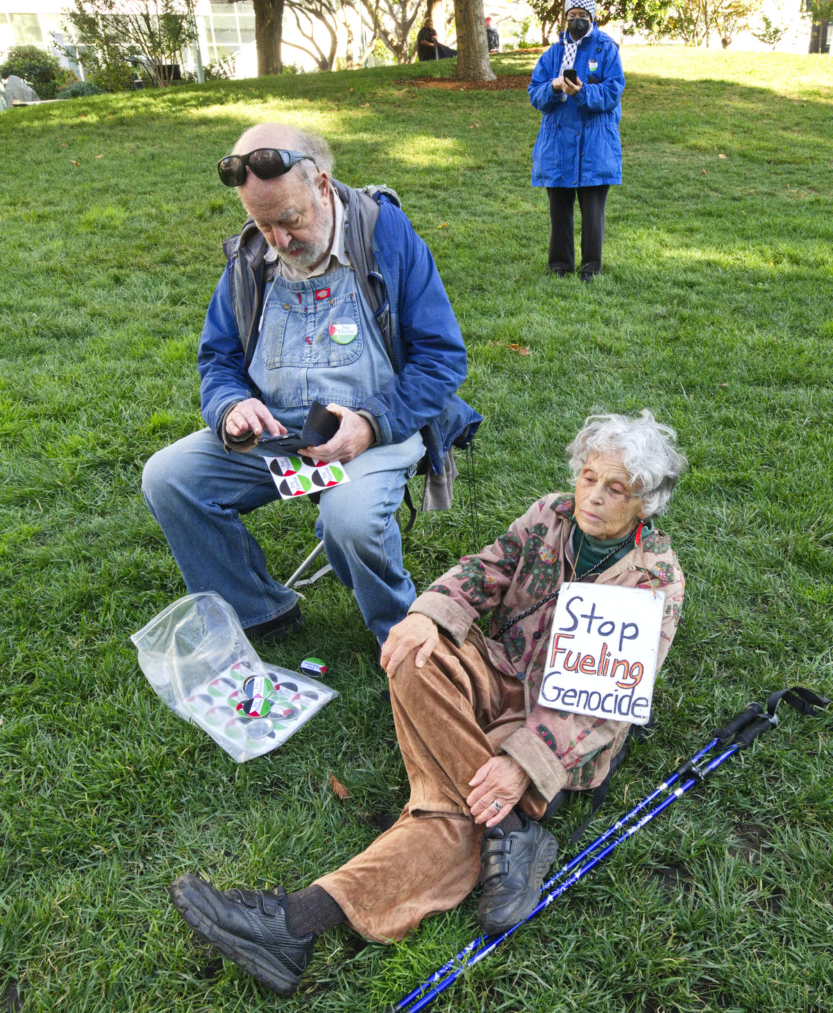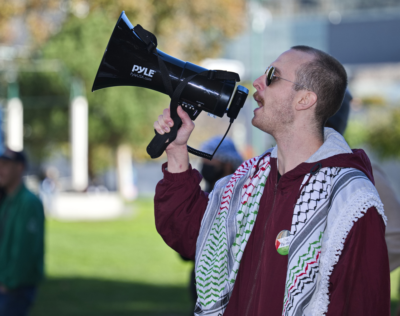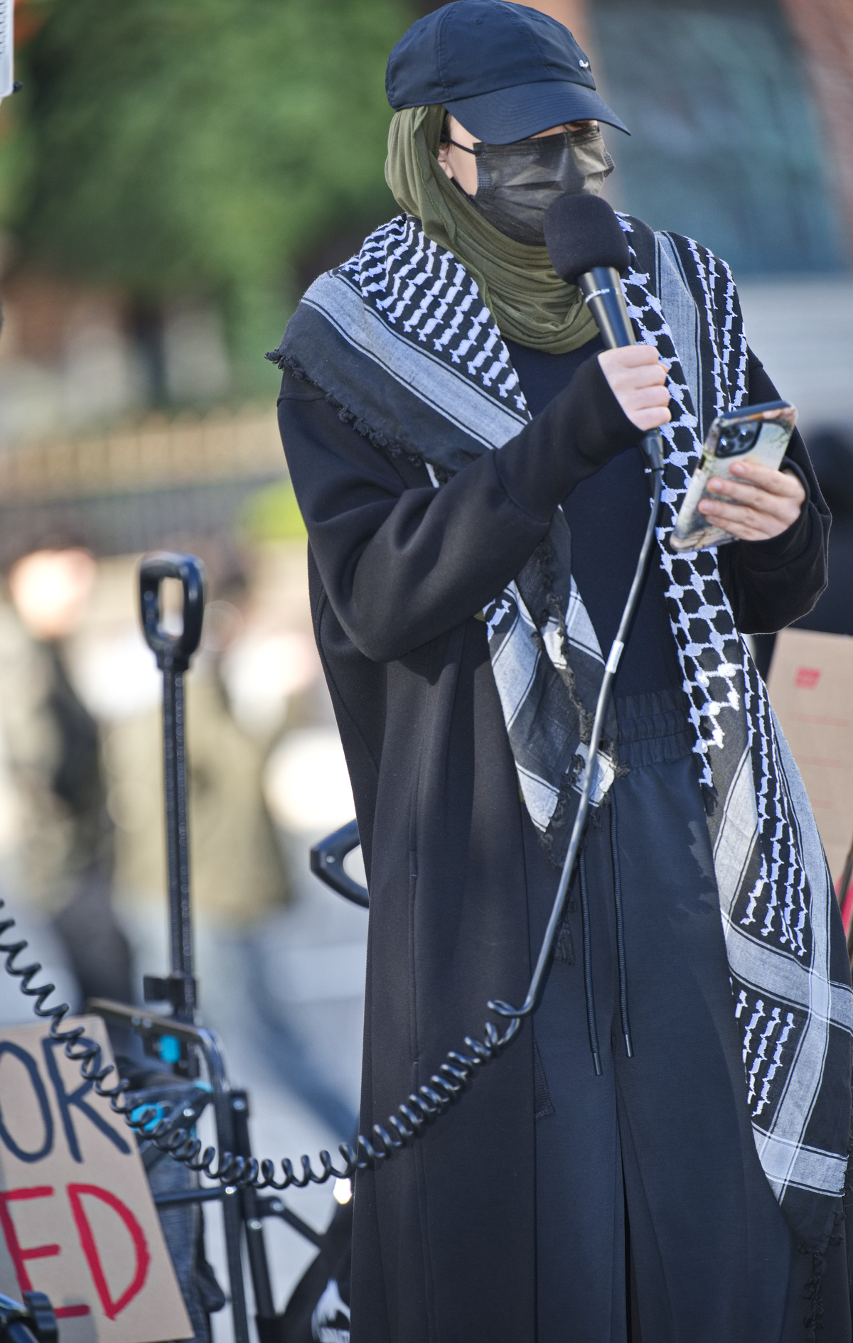 Simultaneously, protesters roamed across campus on bikes, donning Palestinian flags and keffiyehs, chanting in support of cutting ties with Israel.