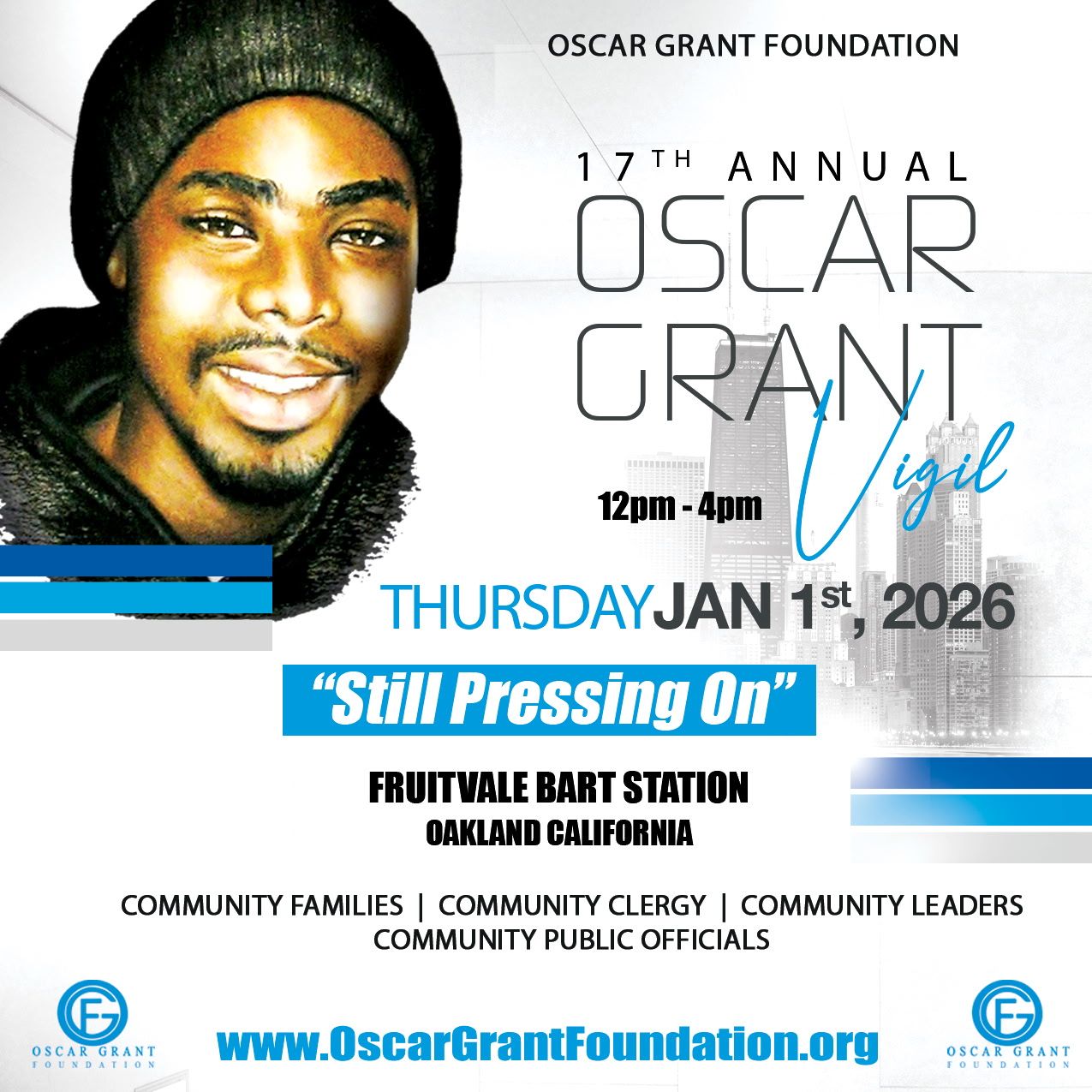 Join us for our 17th Annual vigil remembering the legacy of Oscar Grant III.