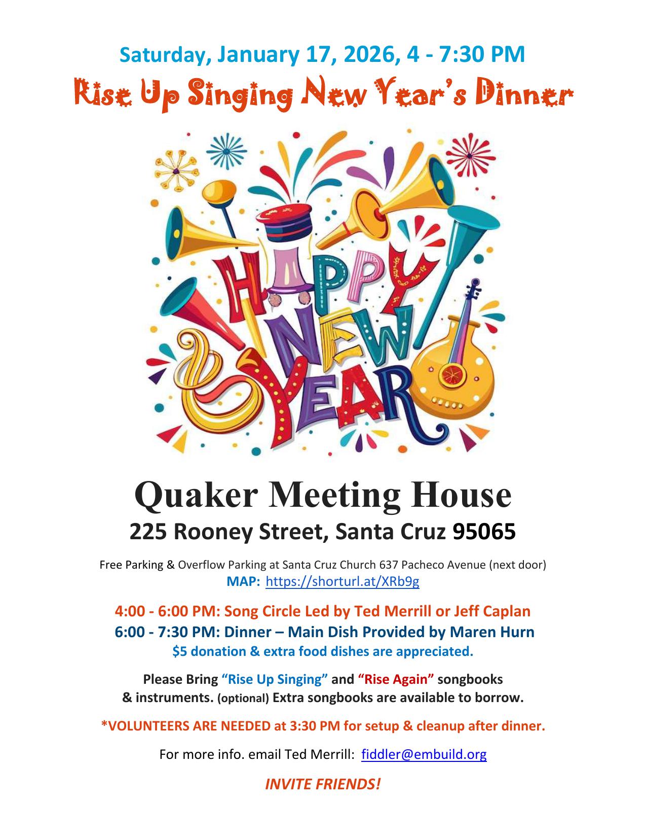 Please Bring “Rise Up Singing” and “Rise Again” songbooks & instruments. (optional) Extra songbooks are available to borrow.