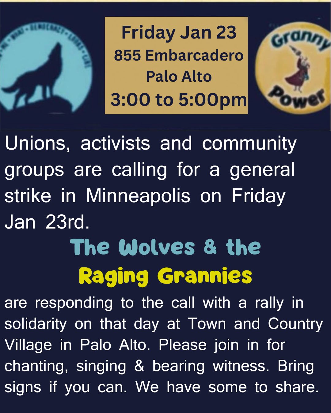So what does that mean for us in NorCal? Well the way we see things, it's just a matter of time before ICE descends on us like a plague of locusts and when that happens, no phone calls from Marc Benioff or any other billionaire will stop them. So we'd like to show up and be in solidarity with Minneapolis like we hope communities from all over this country show up for us when it's our turn in the barrel.