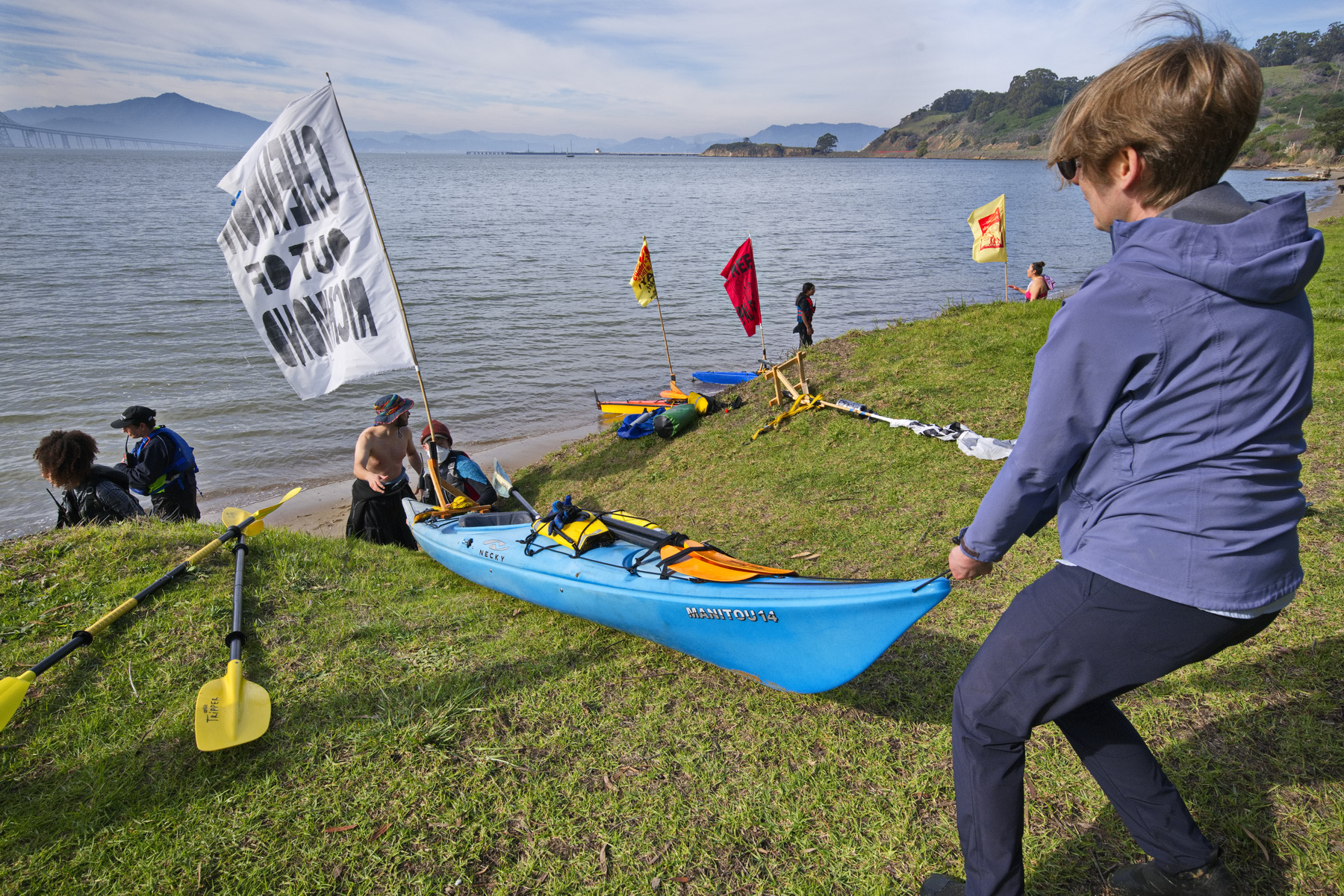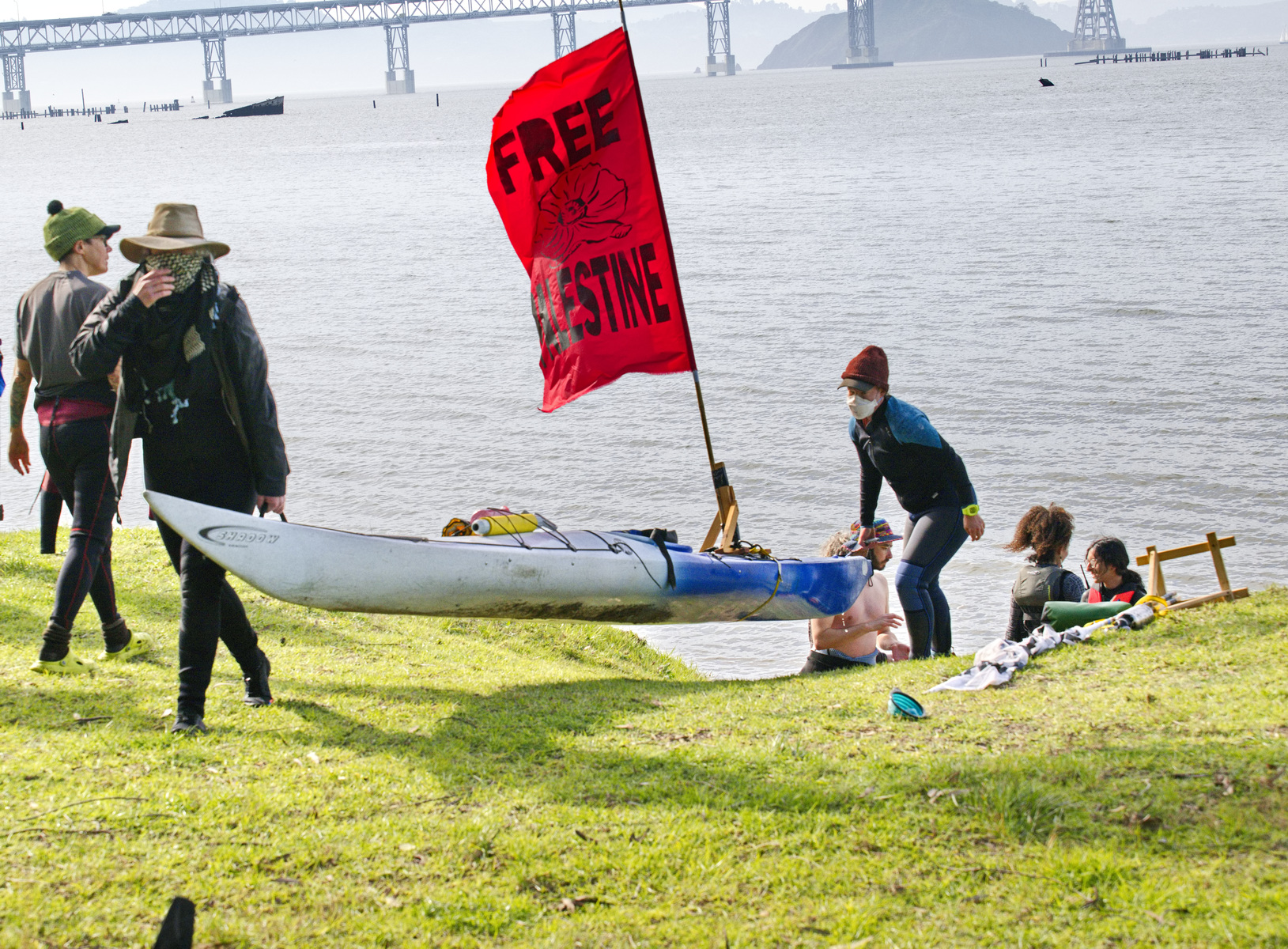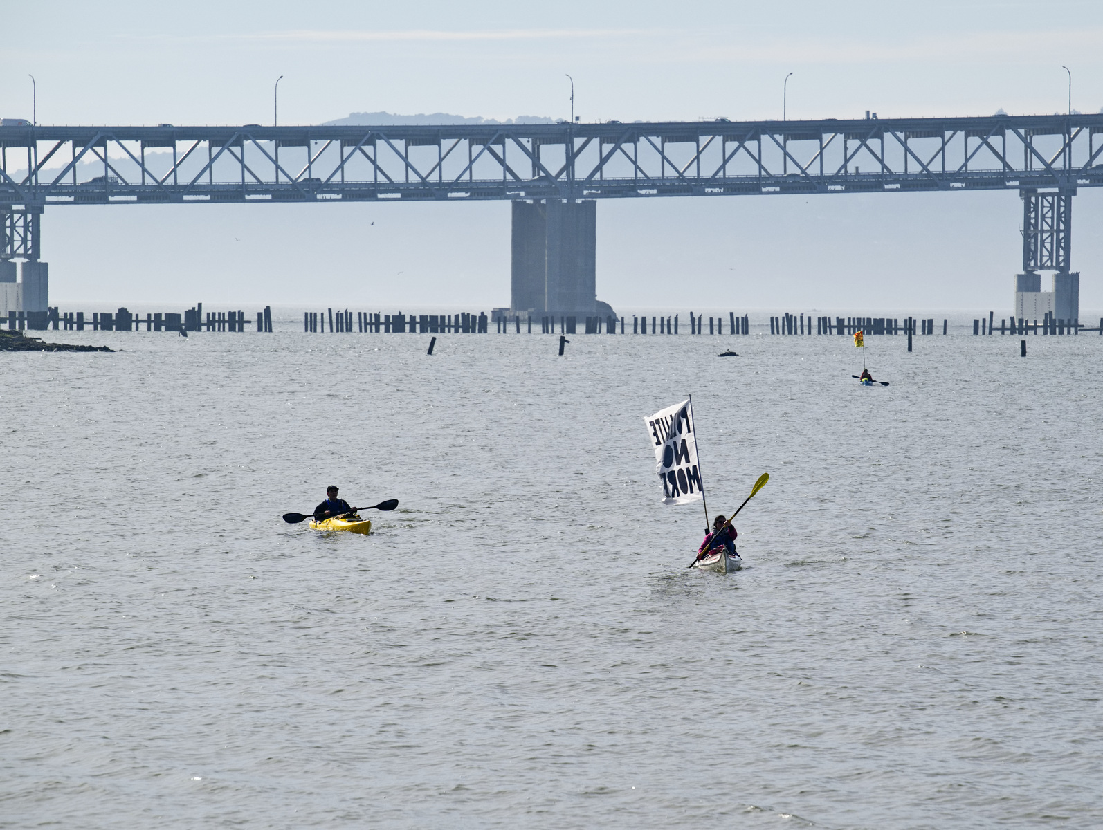 "Kayaktivists" confront Chevron for profiteering from War, Genocide, and environmental destruction from waters next to Richmond refinery.