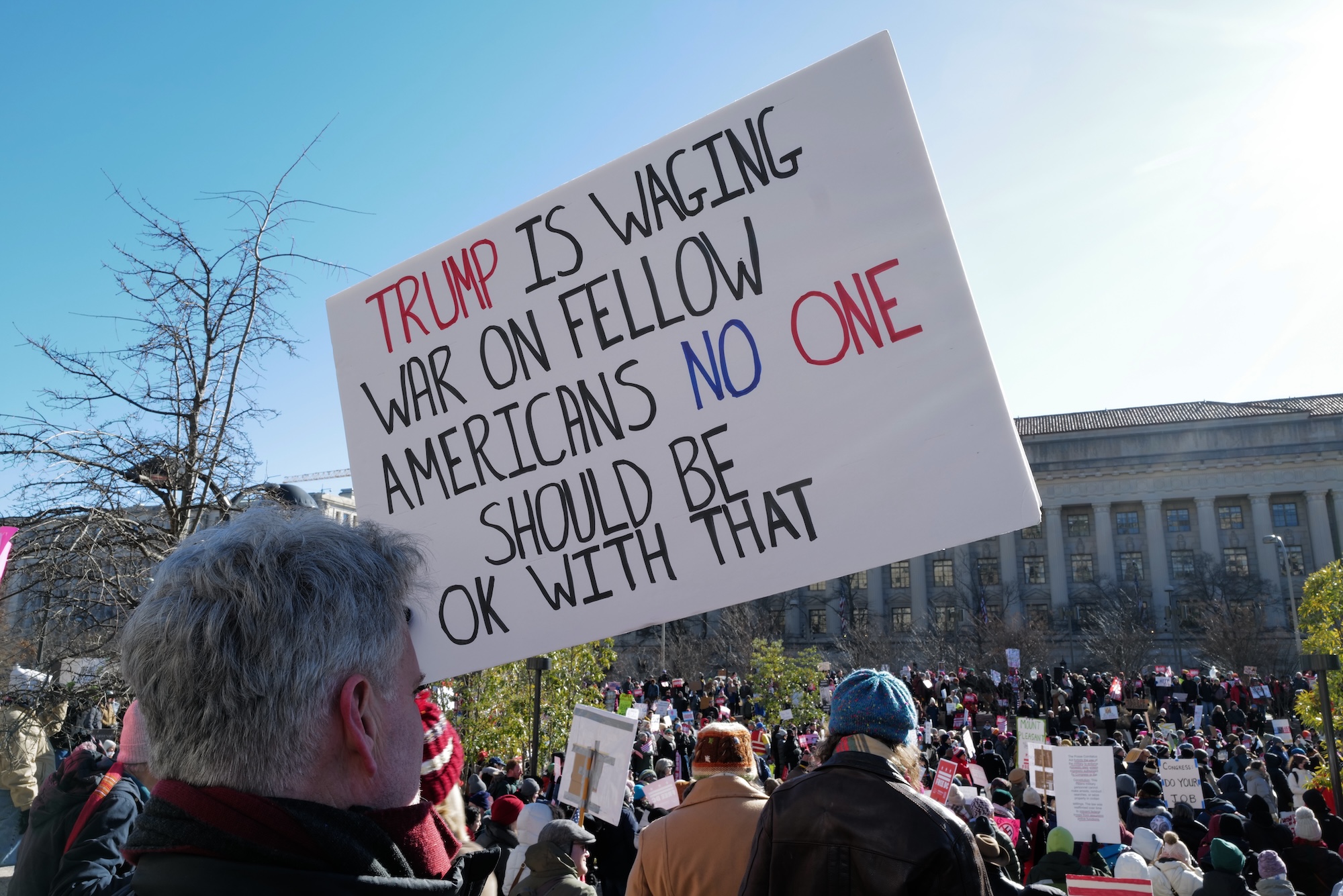 Three separate but interrelated protests took place in the nation's Capital on the first anniversary of Donald Trump's inauguration. It was not a happy occasion...