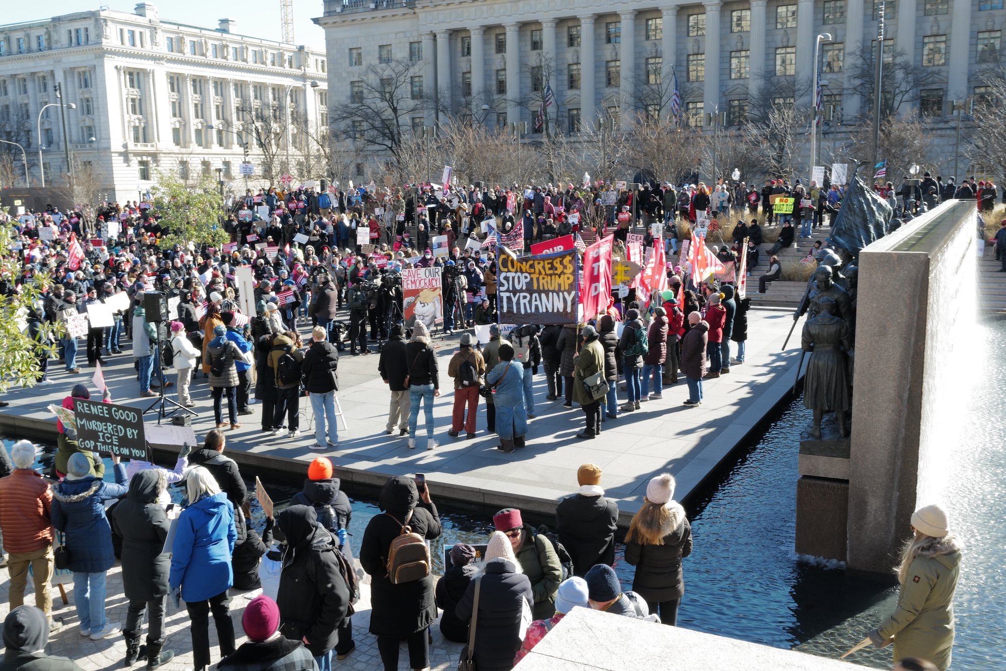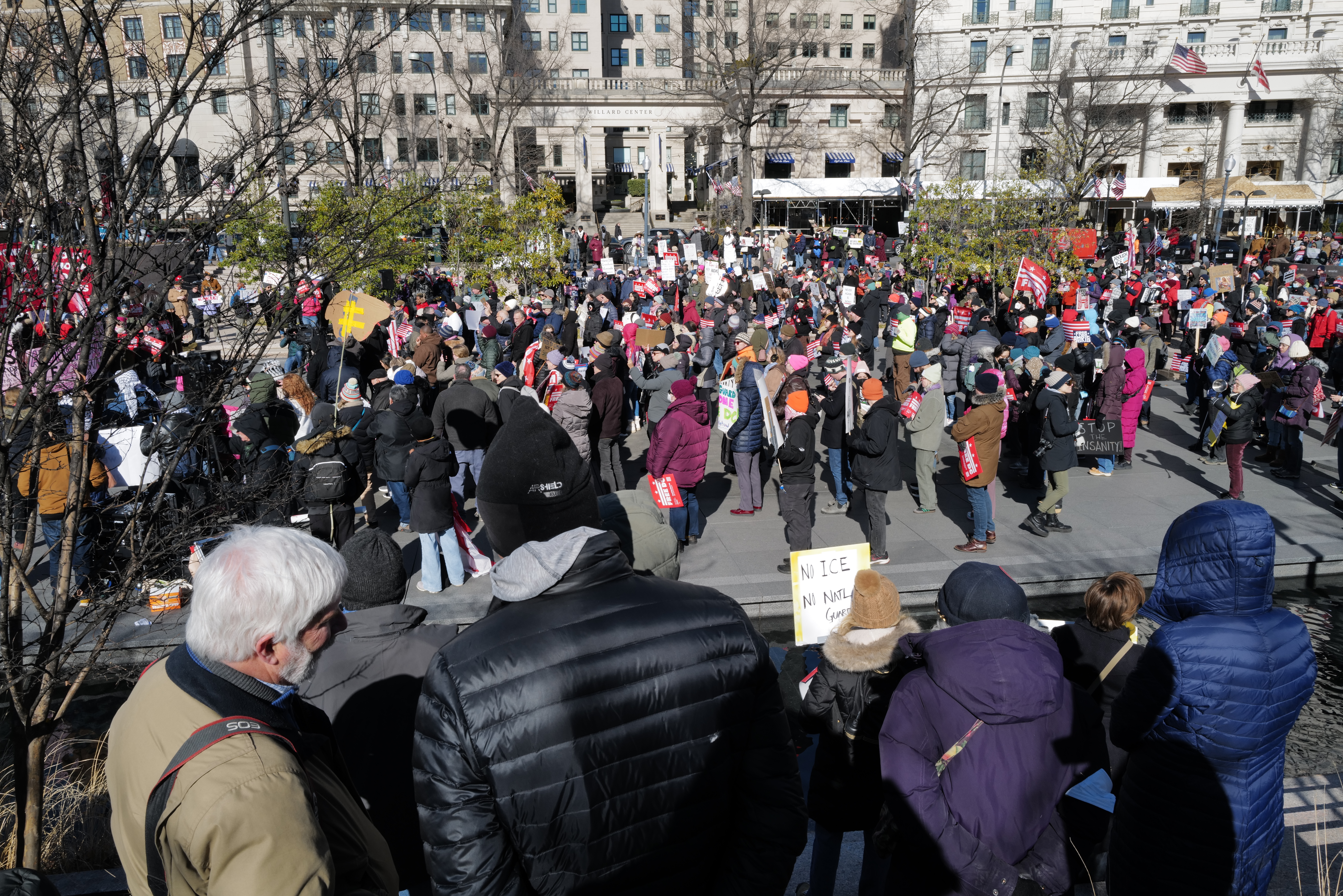 WASHINGTON (01-20) – In acknowledging the unwarranted and chaotic realignment of the federal government in the aftermath of Donald Trump’s inauguration on January 20, 2025, a rally and protest took place at Farragut Square to “honor and acknowledge the freedoms, principles, public services and essential national values trashed by the Trump Regime since it took power a year ago.”