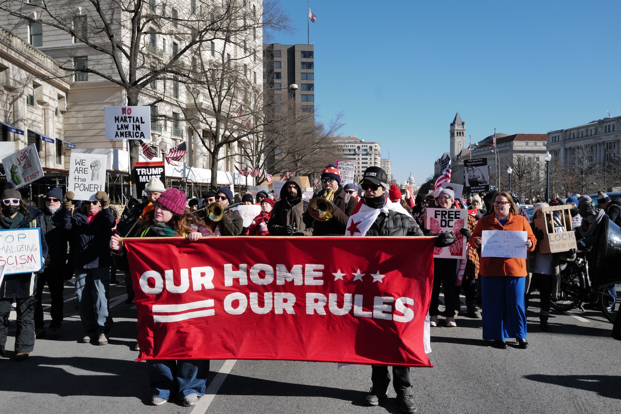 On speaker, Jackie Johnson, related how “This administration is openly using the tools of government as weapons of retaliation and control. Congress itself is being used as a weapon against the people of the District of Columbia.” She illustrated her point by saying that more than fifty bills relating to DC being able to govern itself were thwarted by Congress through a “concerted effort” to place local control in the hands of the executive branch in weakening local democracy and nationally to “silence communities across the country that stand in the way of an authoritarian agenda. The people who live in the district deserve the right to govern our own community.”