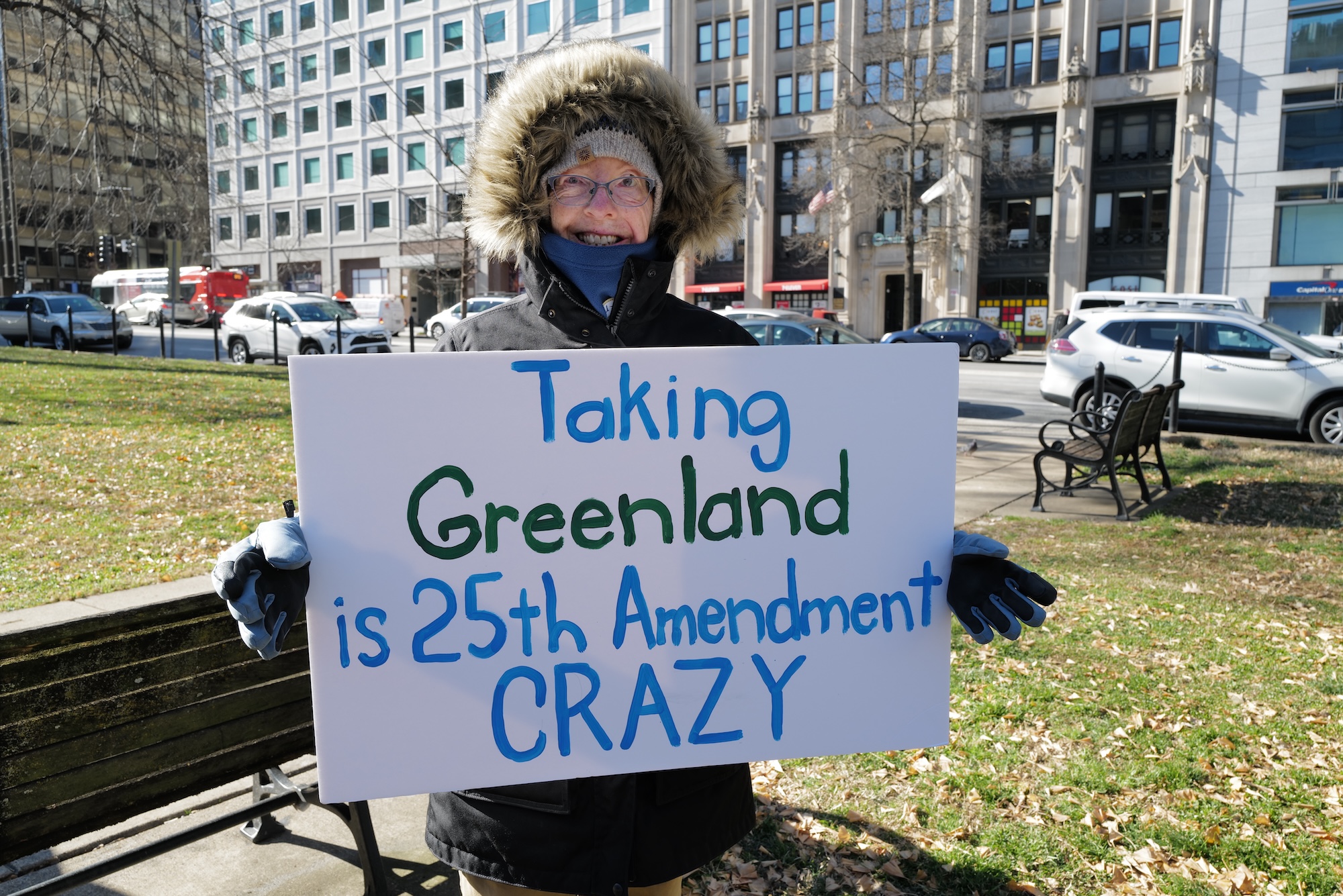While the protest was taking place, President Trump was conducting a rambling two-hour press conference at the White House before departing for Davos where he will attempt to coerce the EU into supporting his taking of Greenland, at the peril of his adding additional tariffs against any holdouts.