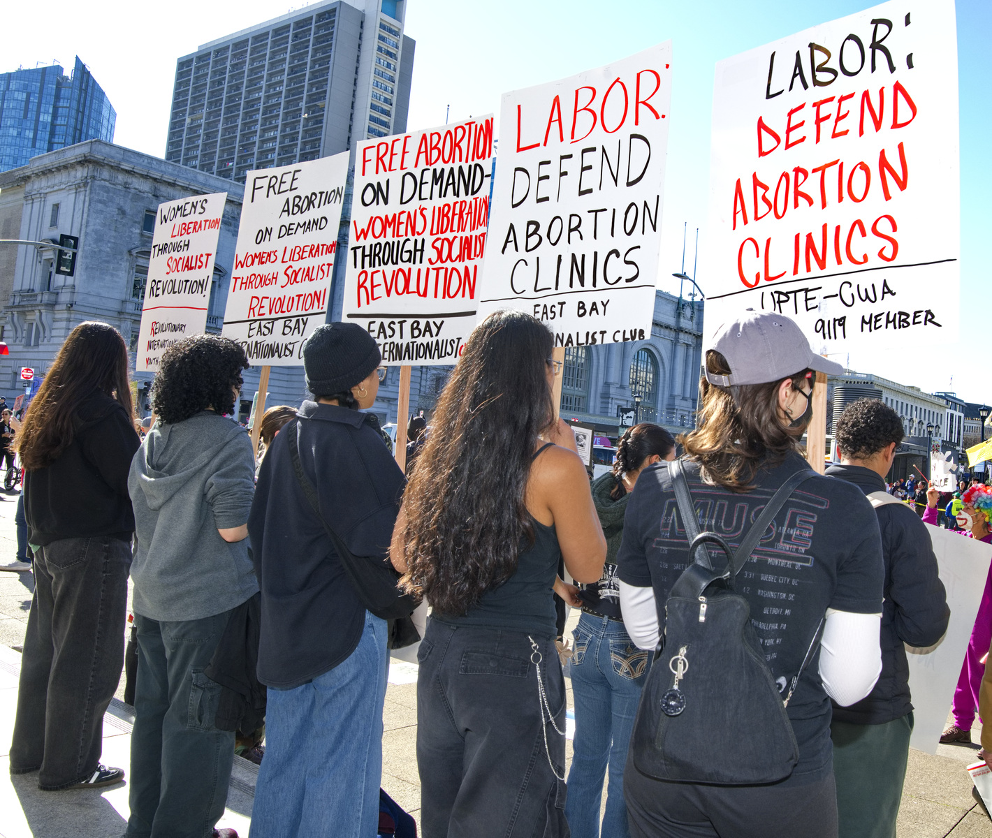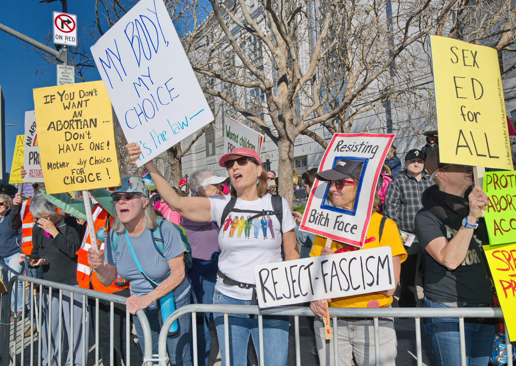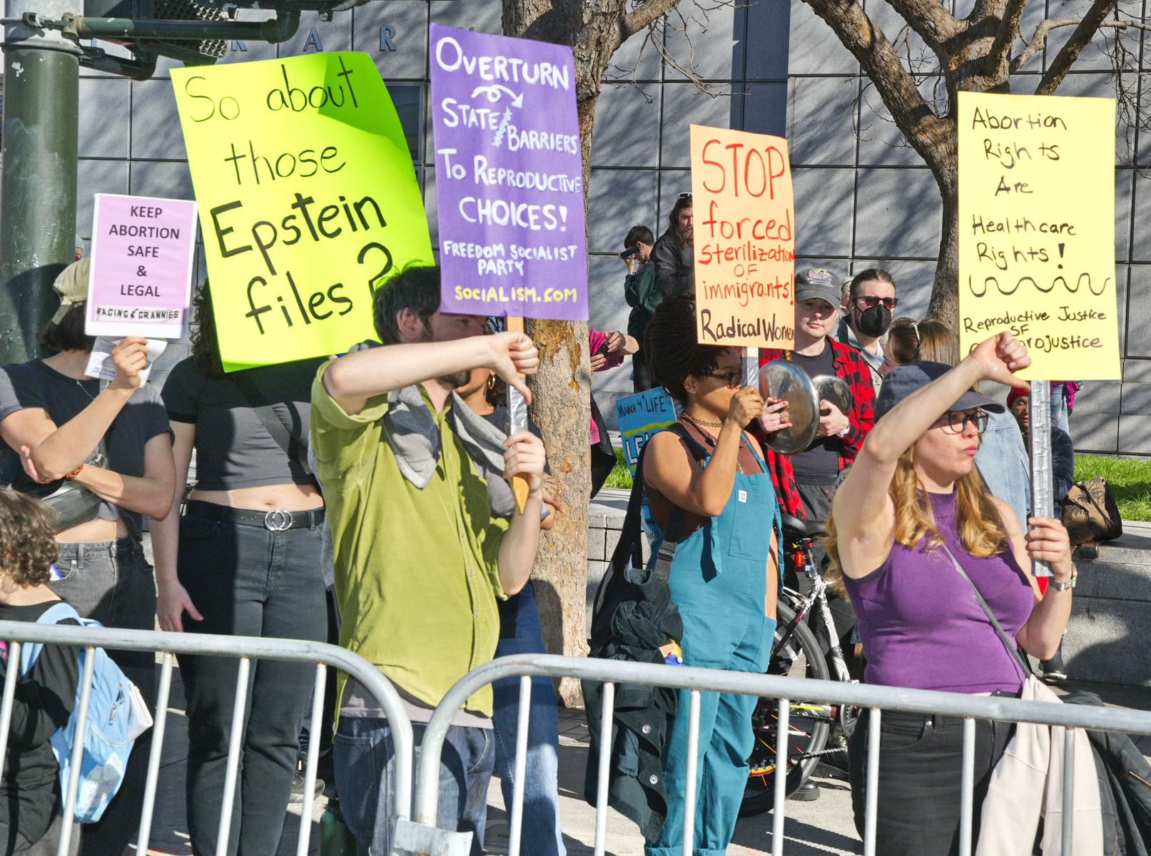 (San Francisco, Jan.) - 24Once more, very holy looking priests in full costume, herded school children bussed in from Catholic schools to hold their 22nd "pro-life" march through San Francisco.The uniformly white with very little ethnic or racial diversity mass of mostly high school age kids began their march from the Civic Center to Market Street, ending at the Embarcadero. They shuffled past the plaza in front of the SF Main Public Library where a pro-choice women's rights rally, organized by the SF Reproductive Justice, was in progress.