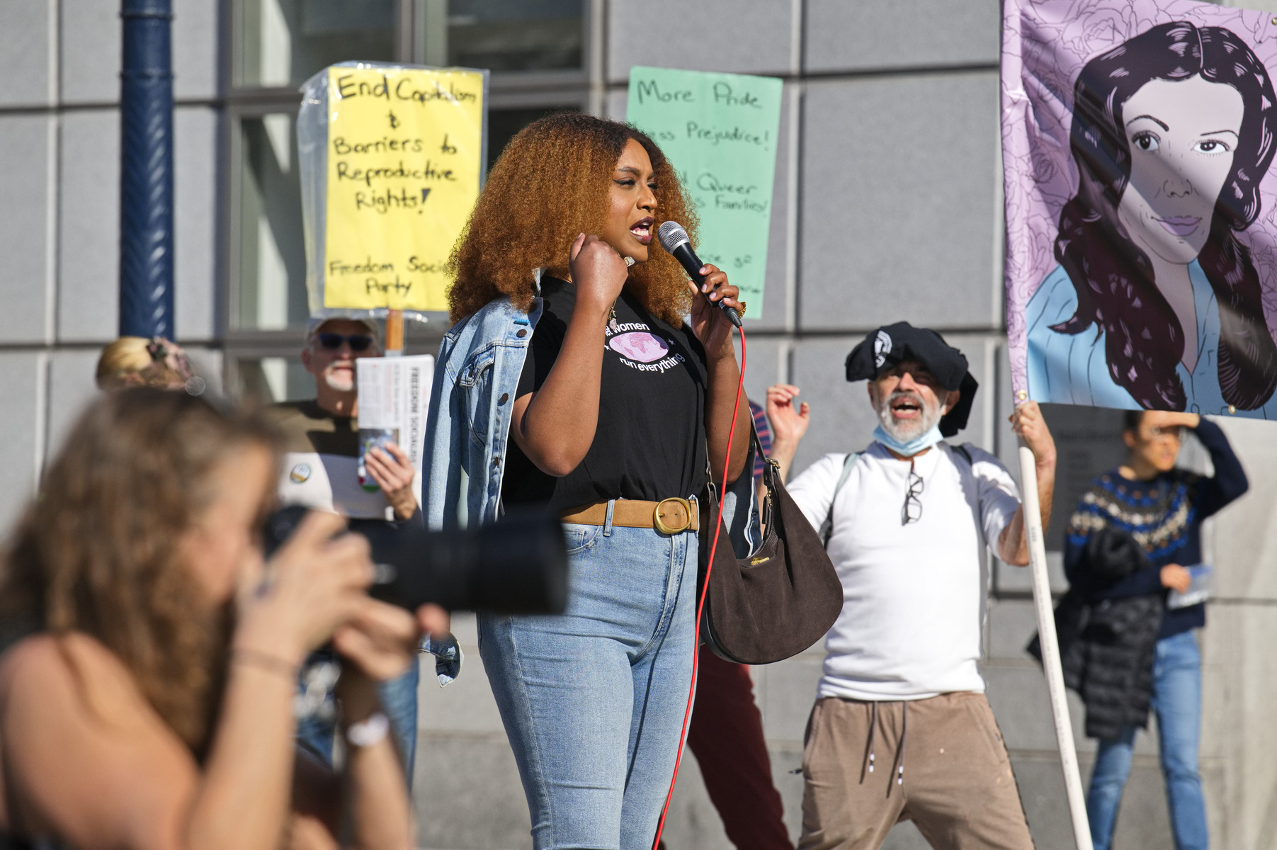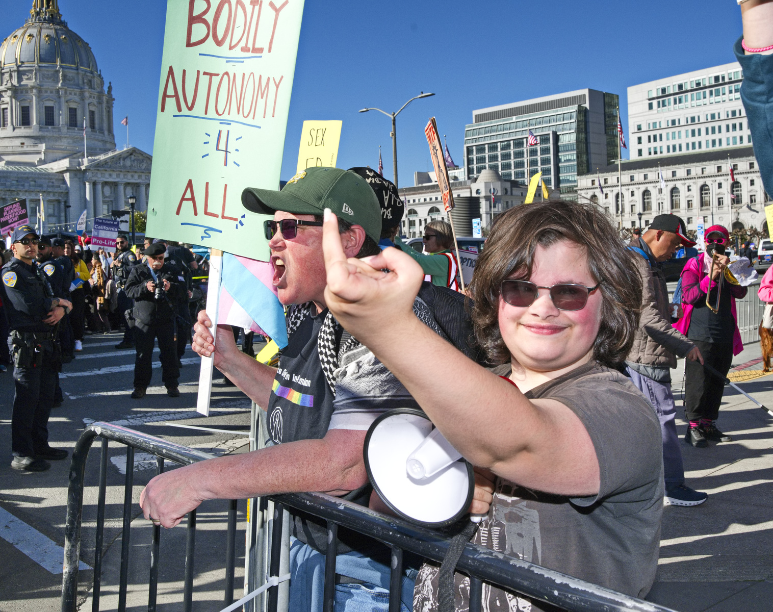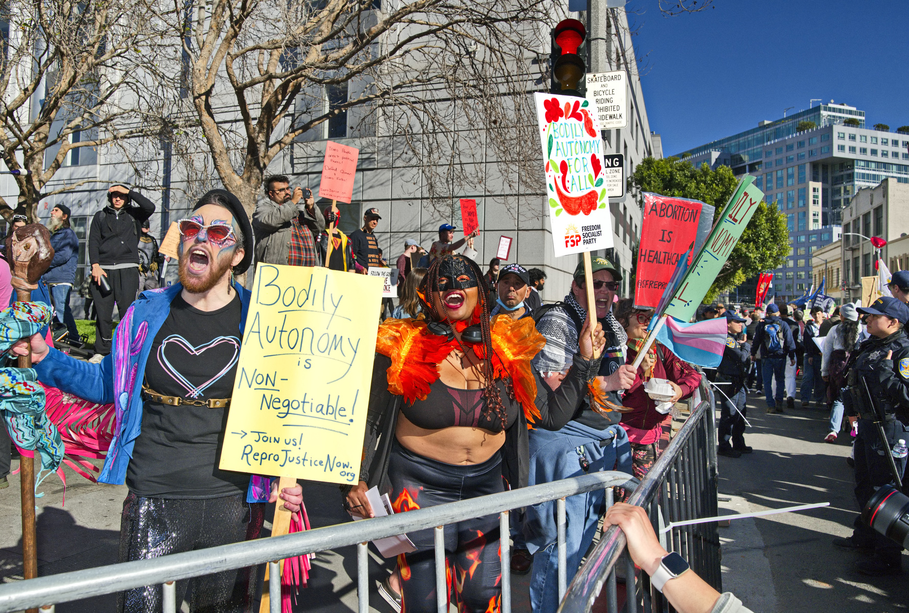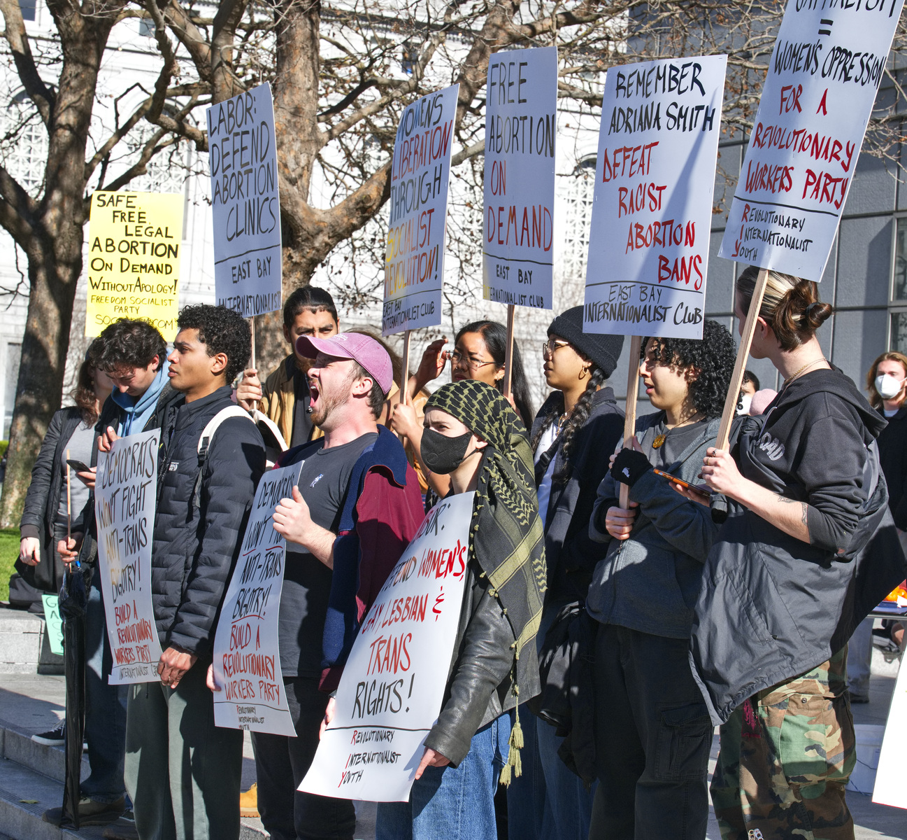 (San Francisco, Jan.) - 24Once more, very holy looking priests in full costume, herded school children bussed in from Catholic schools to hold their 22nd "pro-life" march through San Francisco.The uniformly white with very little ethnic or racial diversity mass of mostly high school age kids began their march from the Civic Center to Market Street, ending at the Embarcadero. They shuffled past the plaza in front of the SF Main Public Library where a pro-choice women's rights rally, organized by the SF Reproductive Justice, was in progress.