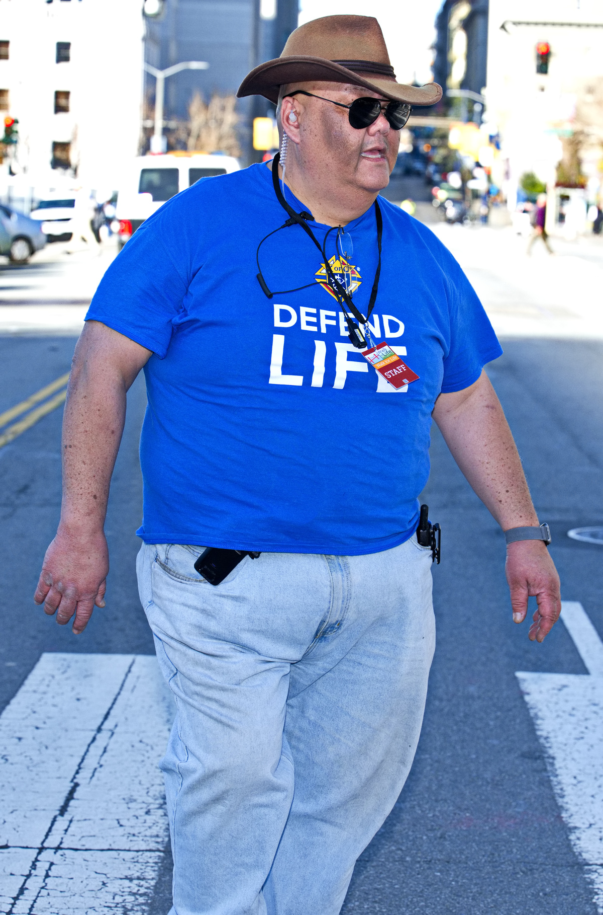 As the birthers passed the library, the pro-choice people loudly made their views known. Separated by many police, the interaction remained peaceful.