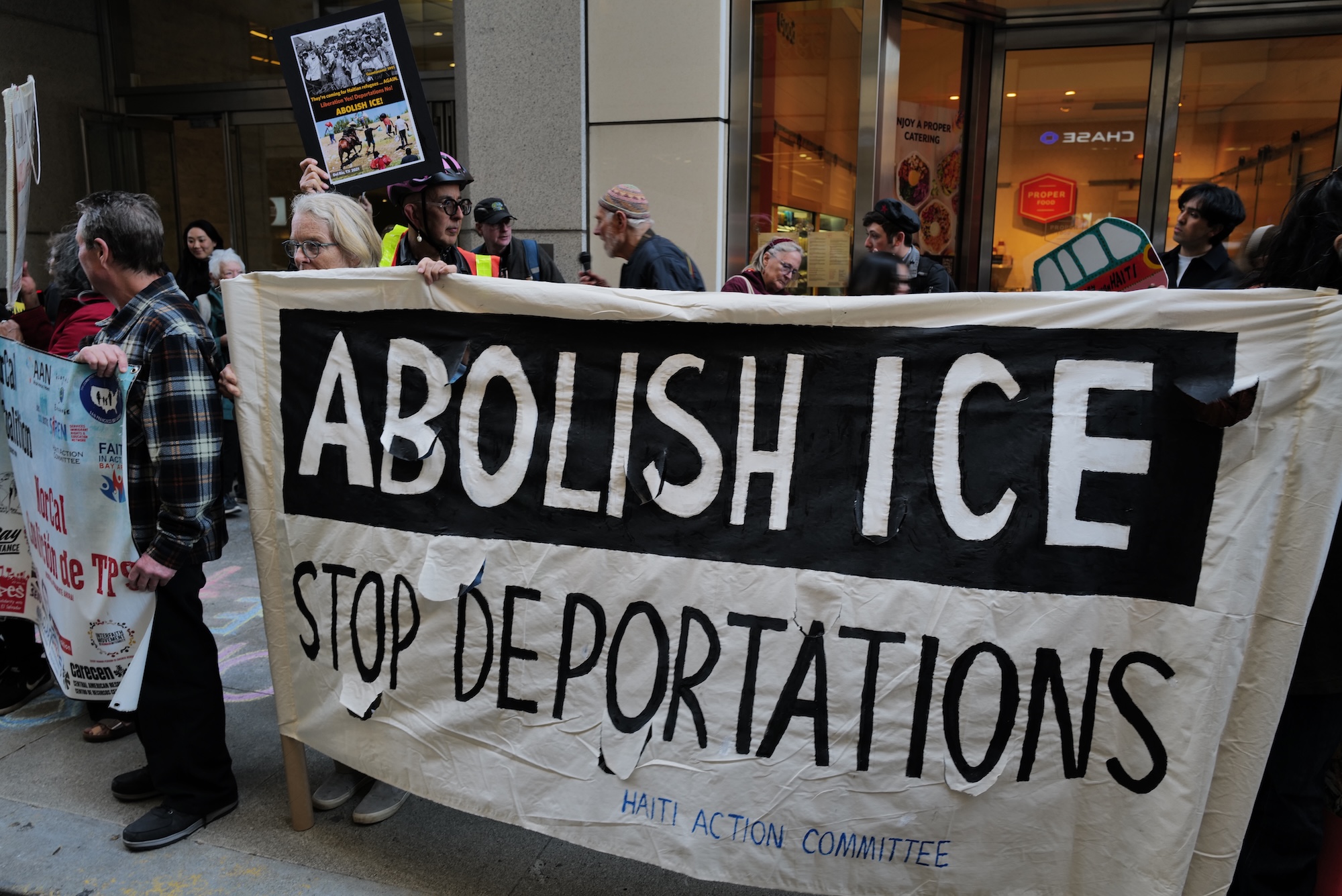 During the Washington court proceeding, human rights advocates in San Francisco rallied outside the US Immigration Court to denounce the administration’s enforcement agenda and demand sweeping policy changes. They urged officials to extend the deadline for Haitian Temporary Protected Status (TPS), to safeguard refugees from all TPS-designated countries, abolish ICE, and end what they described as systemic attacks on immigrant communities, along with anti-immigrant and anti-Black policies within the Department of Homeland Security.