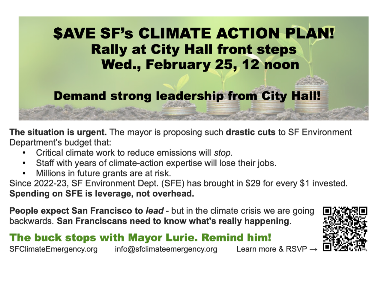 $ave SF's Climate Action Plan! Rally at City Hall to Demand No Cuts to SF's Env. Dept.