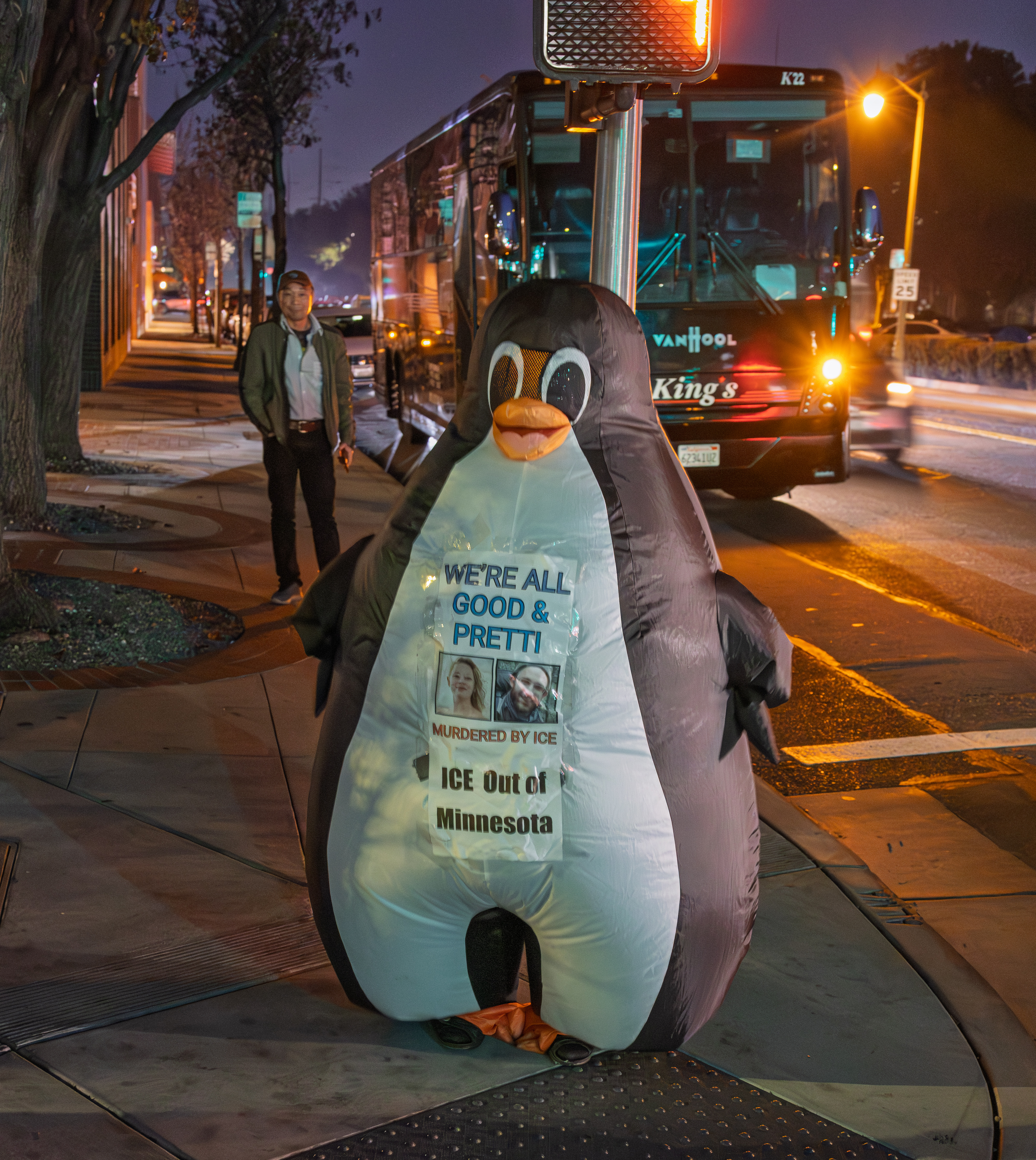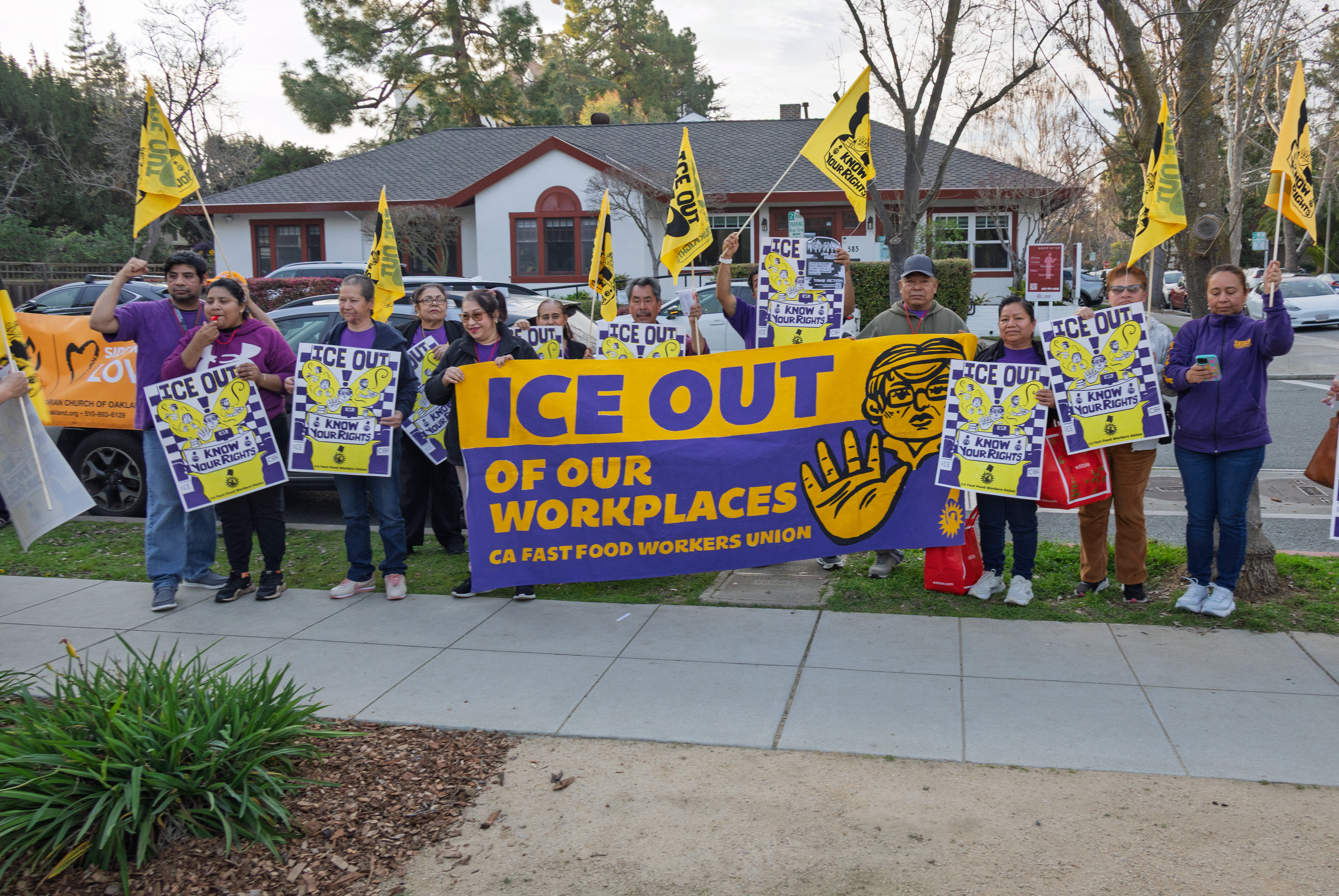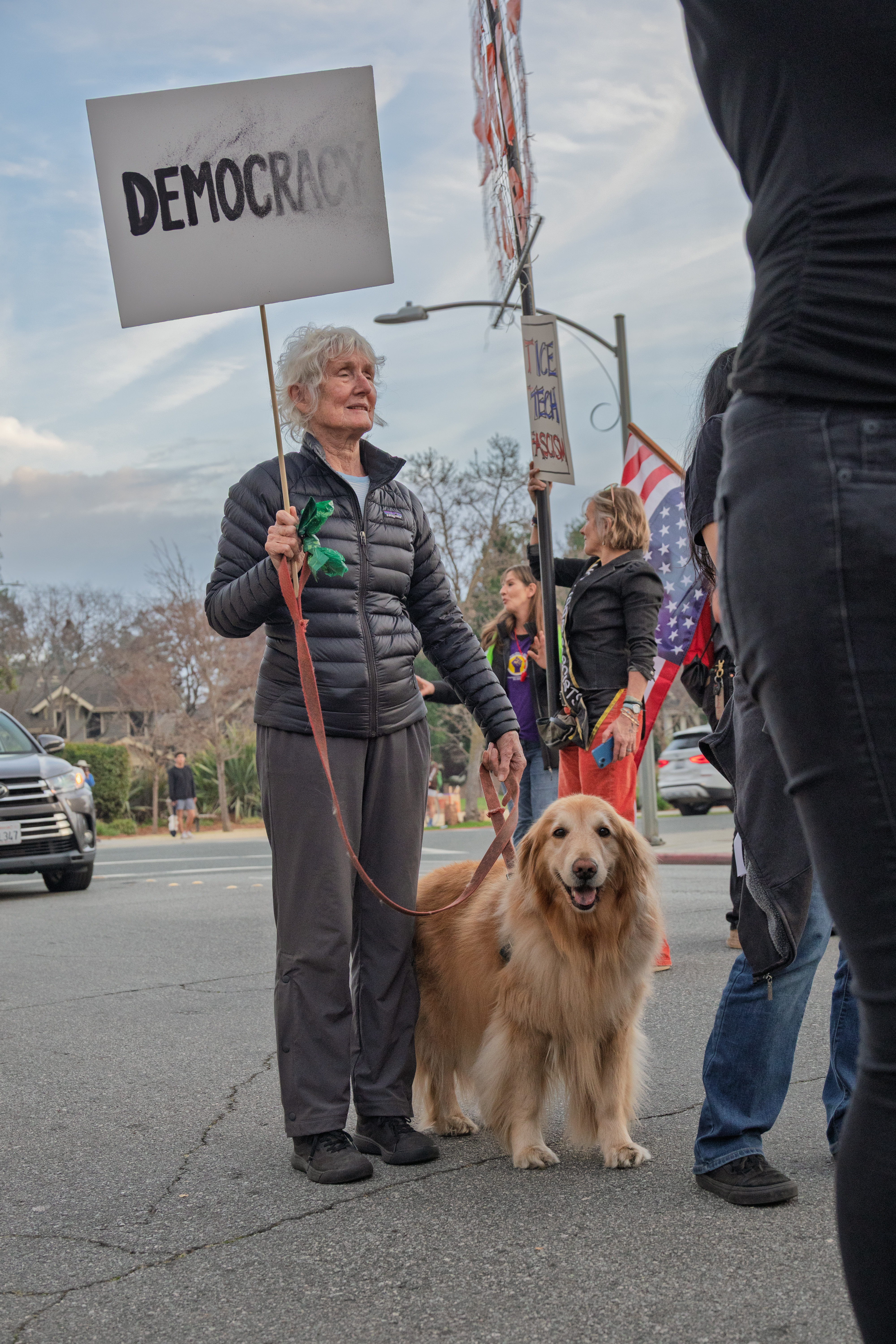 Rally Outside Palantir's Palo Alto Office During Super Bowl Week