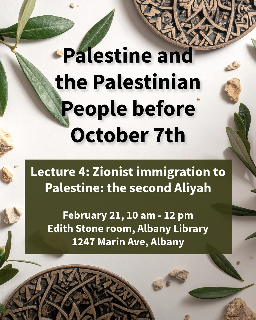 Lecture 4 of Palestine and the Palestinian People before October 7th continues this Saturday with a deeper look at Zionist immigration to Palestine and the Second Aliyah — connecting early Political Zionism to the structures and realities we see today.