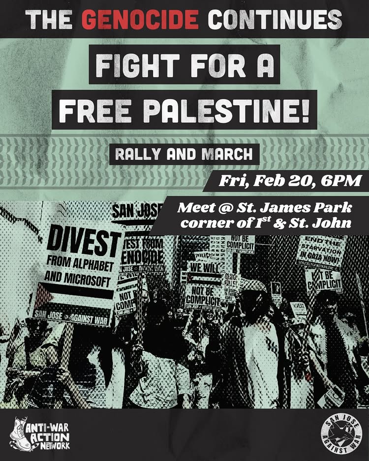 As part of the Anti-War Action Network Week of Action for Palestine (Feb 16-22) join us for a rally and march as we continue the fight for Palestine until liberation!