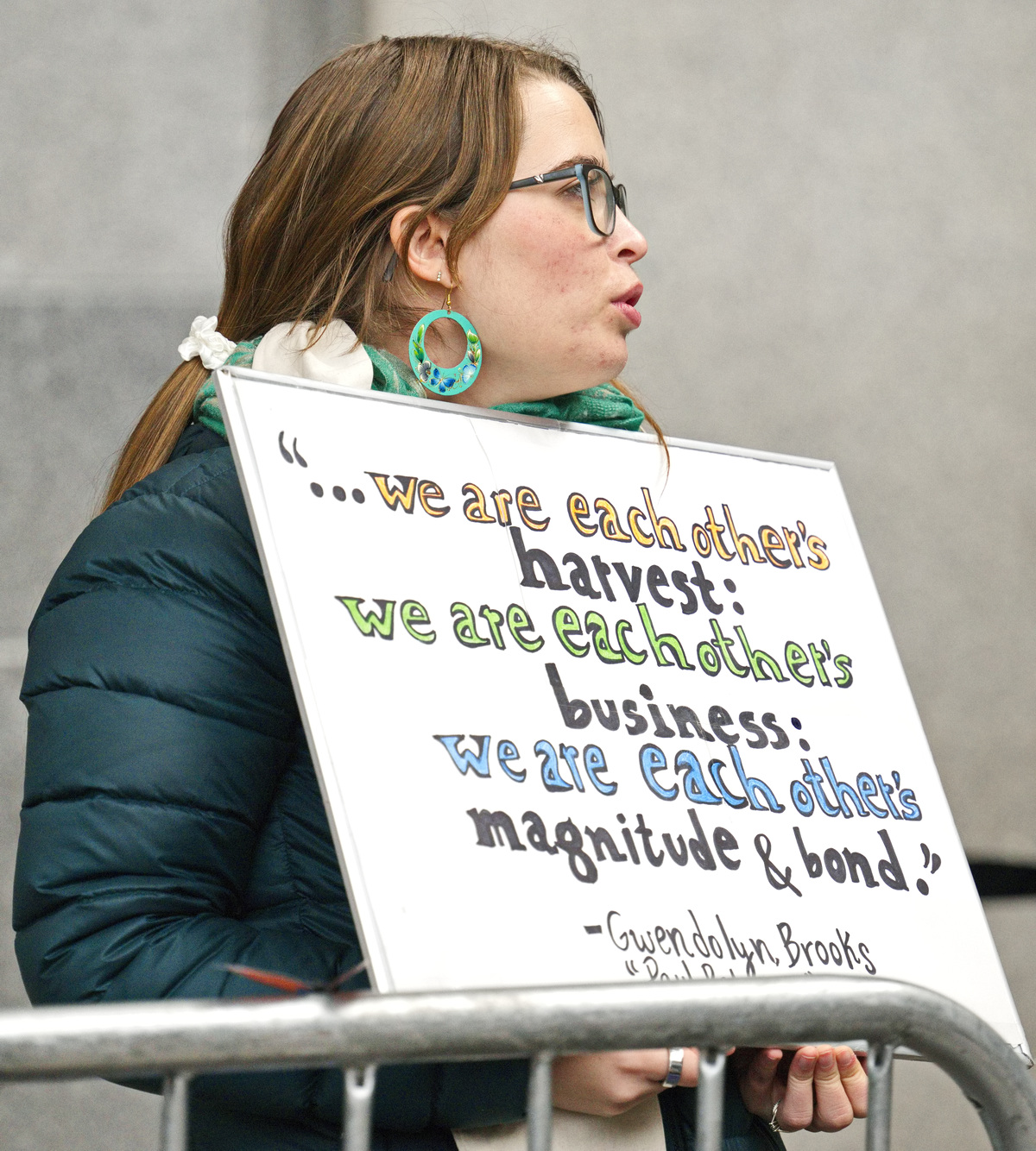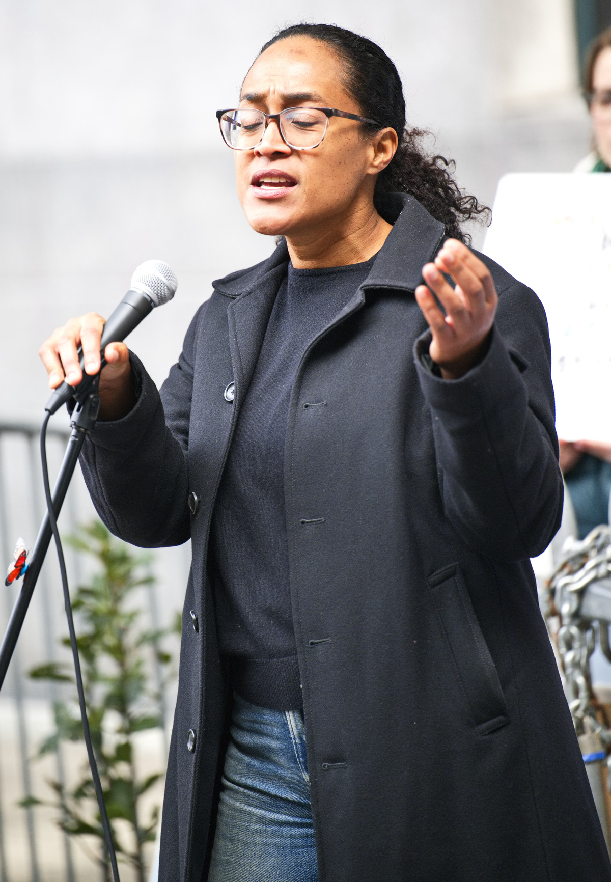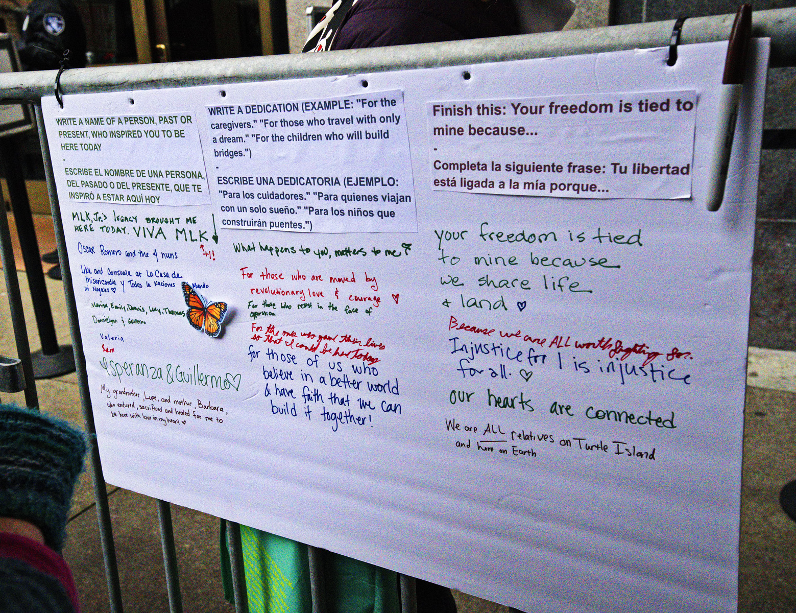 Banners, speeches and music as Justice for Guillermo campaign rallies at 639 Sansome St. (ICE)